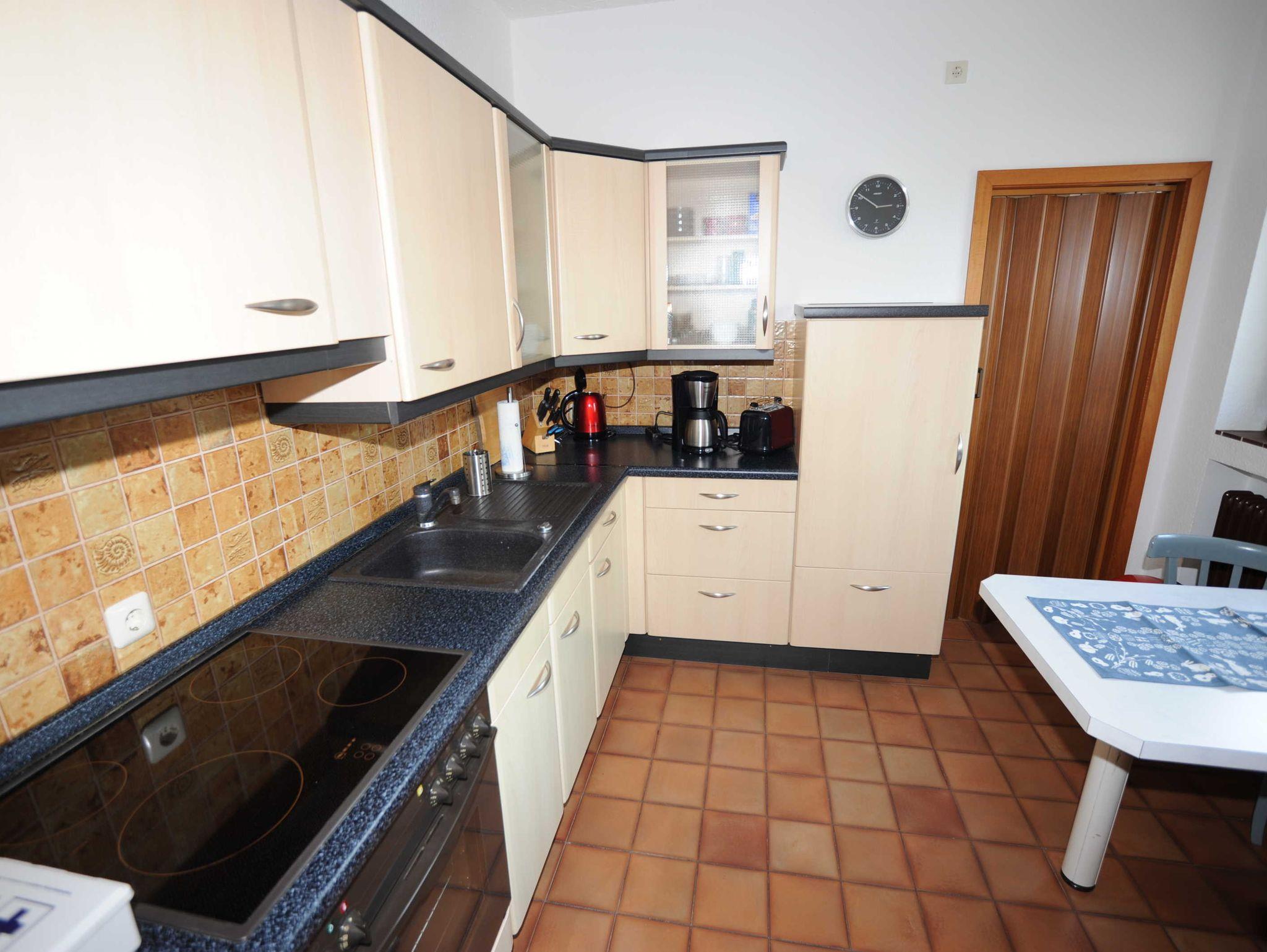 Die Küche ist ausgestattet mit Markenelektrogeräten, E-Herd mit Backofen und Grill, Kühlschrank und Geschirrspüler.