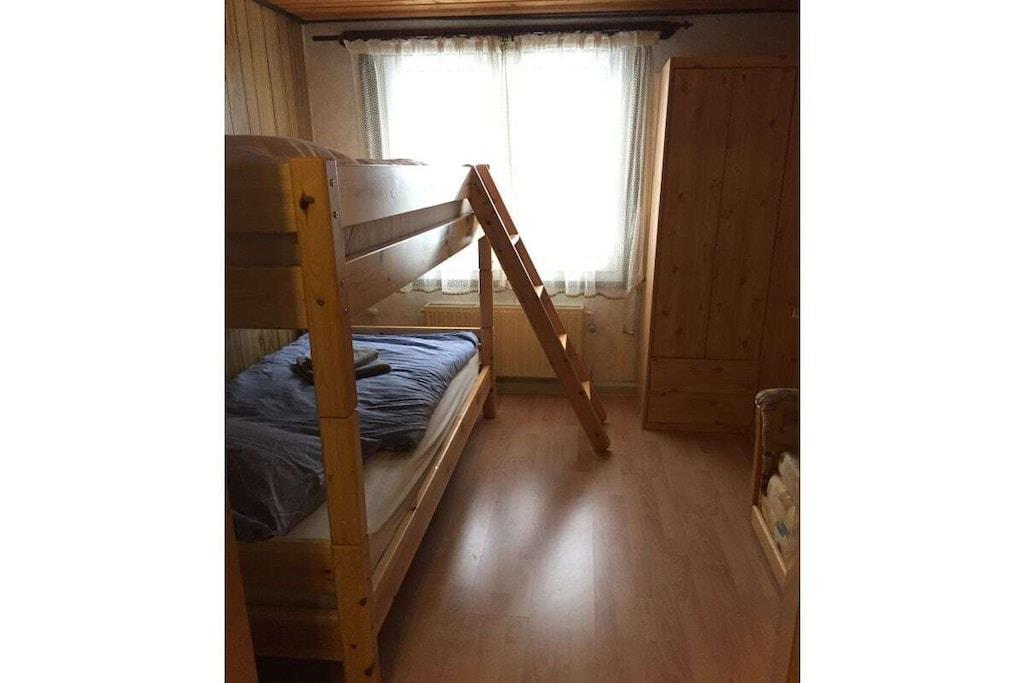 Ground floor: (hallway(Mirror, Wardrobe Coatrack), Living room(TV, CD player, stereo unit, air conditioning), Kitchen(Egg Cooker, Tea Towels, Kitchenette, hob, electric kettle, toaster, cooker, coffee machine, oven, microwave, dishwasher, fridge, freezer, air conditioning), bedroom(Bed Linen, Wardrobe, double bed), Children's bedroom(Bed Linen, bunk bed), bathroom(toilet, stereo unit, shower, washbasin, hairdryer), storage(tumble dryer, washing machine, ironing board, iron, drying cabinet)) Fire Alarm, Hot Water, Internet Access DSL, Safe, Vacuum Cleaner, garage, Internet access, First Aid, tumble dryer, washing machine, heating, terrace(Sun Umbrella, Barbecue center, grill, grill, garden furniture), garden(Sun Umbrella, Barbecue center, grill, garden furniture), parking, bicycles available, ironing board, iron, drying cabinet, telephone