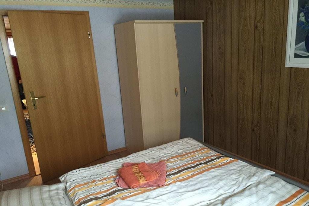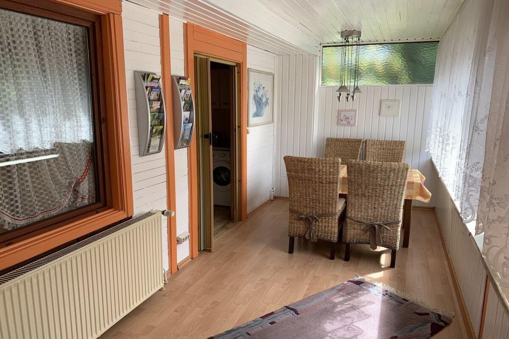 It is an 80 m² holiday home and has a plot of 420 m². It can accommodate 4 to 5 people. It features a living room with digital satellite TV, DVD player, music system, and automatic climate control, DSL 10,000 Wi-Fi, a kitchen with a refrigerator and freezer, a 4-zone oven with a ceramic hob, a dishwasher, and a microwave. A dining and relaxation room is located in the partial conservatory (with a very large and long window front). A bedroom with a double bed is also available. A children's room has a bunk bed. A bathroom with a toilet, shower, and hairdryer is also available. A garage, a washer and dryer, a parking space, and gas-fired central heating are also available.
