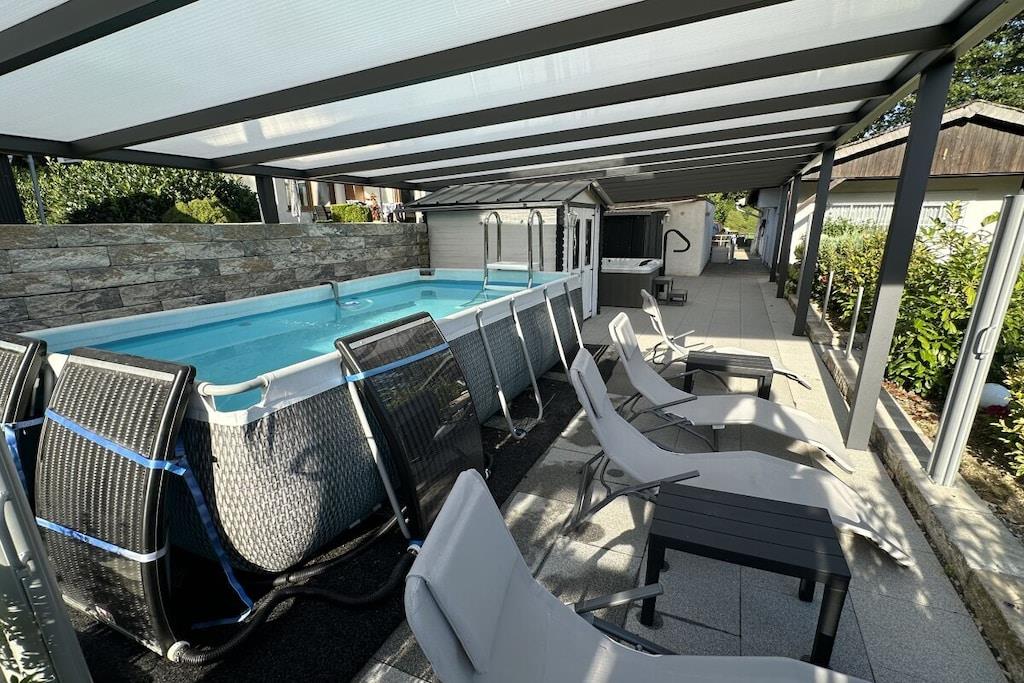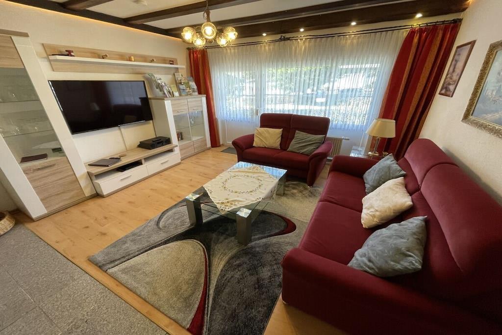 Es ist ein 95 qm großes Ferienhaus und hat eine Grundstücksfläche von 815 qm. Das Ferienhaus ist für 1 bis max. 4 Personen nutzbar. Ein Pool und ein Whirlpool ist im Garten vorhanden und ganzjährig nutzbar. Das Grundstück ist komplett eingezäunt. Mit einem Wohnzimmer mit Kaminofen (inklusive Holzbenutzung), 55 Zoll Smart Sat-TV, Blu-Ray-Player, Klimaanlage, Wifi 200 M/Bit, Musik-Anlage DAB+mit Bluetooth und USB Anschluss. Eine Sauna ist vorhanden mit Aufguss Mittel, Küche mit Granitplatte, Kühl-und Gefrierschrank, 4-Zonen Kochofen mit Induktion, Spülmaschine und Mikrowelle. Schlafzimmer mit Doppelbett und 42 Zoll TV. Kinderzimmer mit 2 Einzelbetten. Bad mit WC und Dusche, Waschmaschine und Trockner. Mit Garagenstellplatz, 11 KW Ladesäule, Brotbackhaus im Garten, Kletterburg für Kinder, Trampolin mit 3,70 m Durchmesser, Tisch-Tennis-Platte und Gas-Zentralheizung.