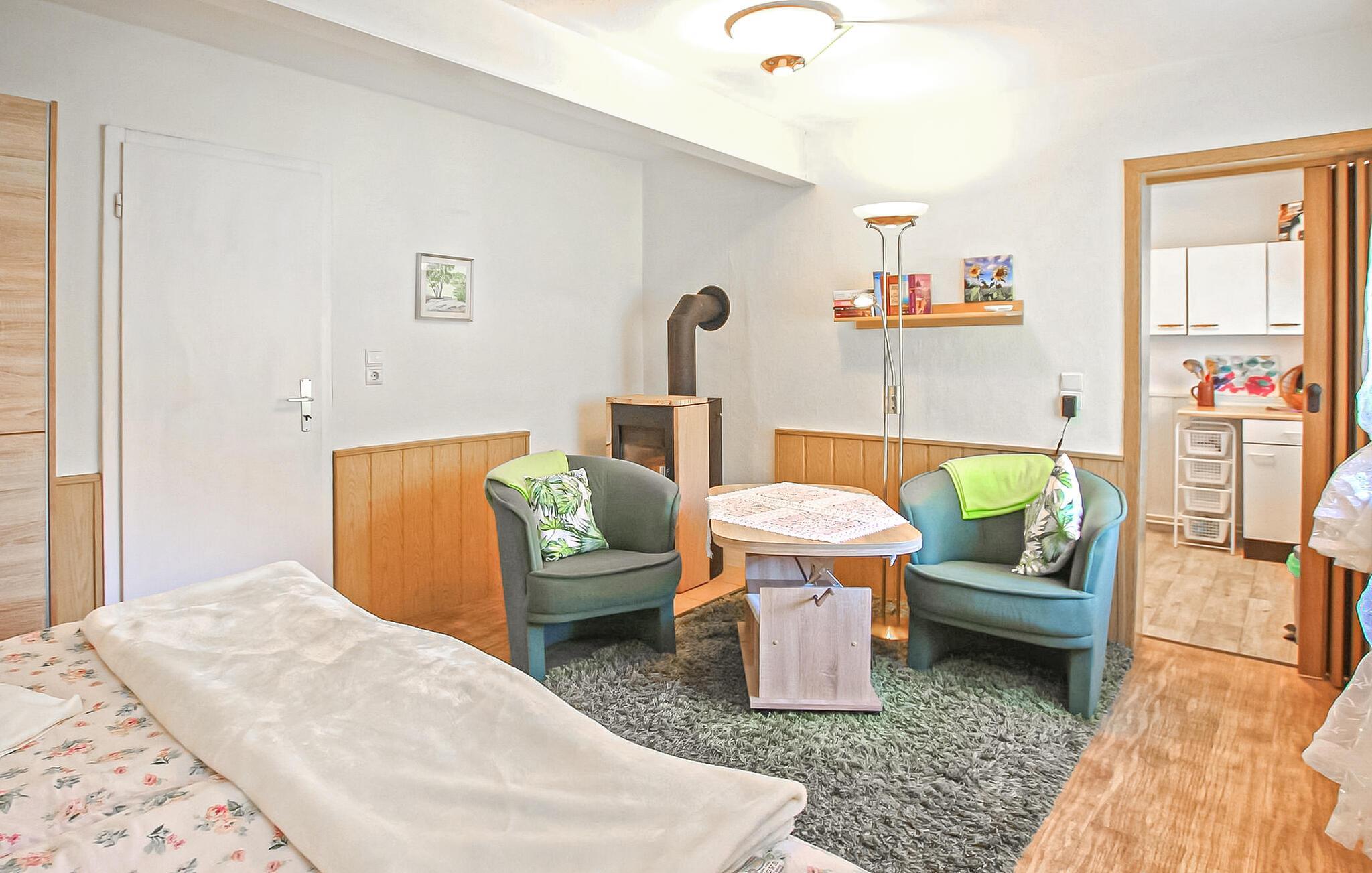 Das 45 qm große Ferienhaus für 2 Personen befindet sich auf dem 2000 qm großen Wohngrundstück des Eigentümers in Ortslage. Der Badestrand am Pälitzsee und 2 Restaurants befinden sich im Umkreis von ca. 500 m. Leider gibt keine Einkaufsmöglichkeit mehr im Ort.Das Ferienhaus ist ausgestattet mit einem kombinierten Wohn-/Schlafraum (Sitzecke, Doppelbett, Flachbild-TV, Radio), einer separaten Küche (E-Herd mit Backofen, Kühlschrank mit Tiefkühlteil, Mikrowelle, div. Küchengeräte), einem großzügigen Eingangsbereich (Veranda) mit Sitzecke und Esstisch sowie einem WC und einer Dusche am Flur. Beheizt wird die Unterkunft mit einer Zentralheizung sowie mit einem Kaminofen (Feuerholz vorhanden). Zur Verfügung stehen zwei möblierte Terrassen, Sonnenliegen, Grillmöglichkeit, Unterstellmöglichkeit für mitgebrachte Fahrräder und Parkplatz. Im Gesamtpreis enthalten sind die Endreinigung, Bettwäsche, Handtücher sowie der Wasser- und Energieverbrauch. W-Lan (in Veranda verfügbar) ist ebenfalls kostenfrei nutzbar.