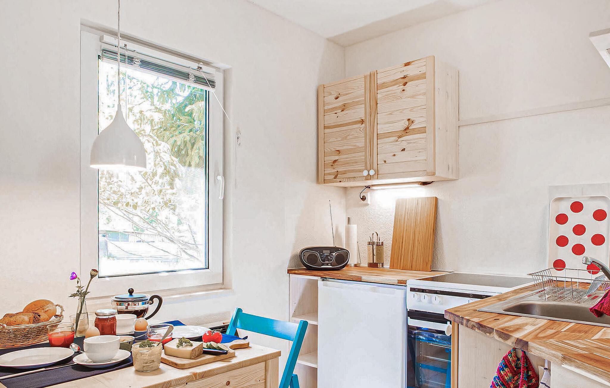 Der ca. 35 qm große Nichtraucher-Bungalow ist ausgestattet mit einem kombinierten Wohn- und Schlafbereich (Couch, ein Doppelbett 1,40 m, Flachbild-TV, Radio), einer Küche (E-Herd mit Backofen, Kühlschrank mit Gefrierfach, Essecke, diverse kleine Küchengeräte), ein Badezimmer (Dusche/WC, elektrischer Handtuchwärmer/Heizung, Föhn) sowie Elektroheizung und Insektenschutz an den Fenstern. Außerdem stehen Ihnen eine Terrasse, ein Fahrradkeller, Parkplätze und kostenfreies WLAN zur Verfügung.