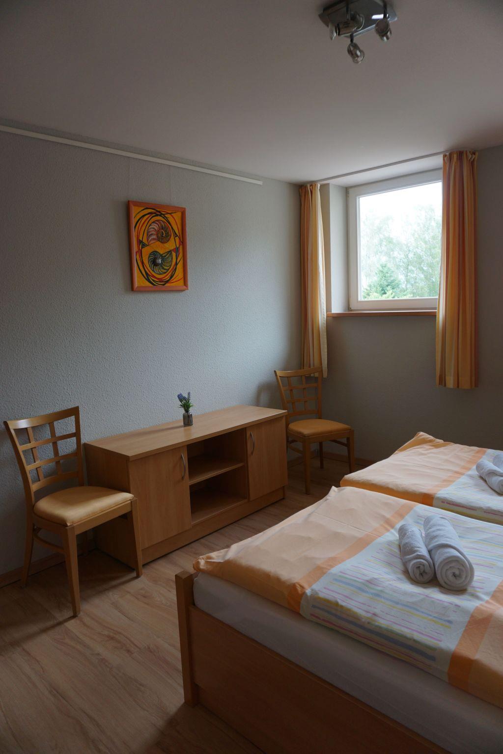 The size of this maisonette flat is 75 m² and has a living area with living room and open-plan kitchen, two bedrooms, which are reached by a spiral staircase, and a bathroom. One bedroom has a double bed (1.90m x 2.00m each) and one bedroom has a double bed with a single bed (90 cm x 200 cm). The kitchen is fully equipped with an oven, freezer, hob, fridge, dishwasher, toaster and kettle. In the living area you will find a seating area with chairs and a table and a sofa set. Here you can listen to music on the stereo system and use the flatscreen TV. The bathroom has a shower, washbasin and WC.