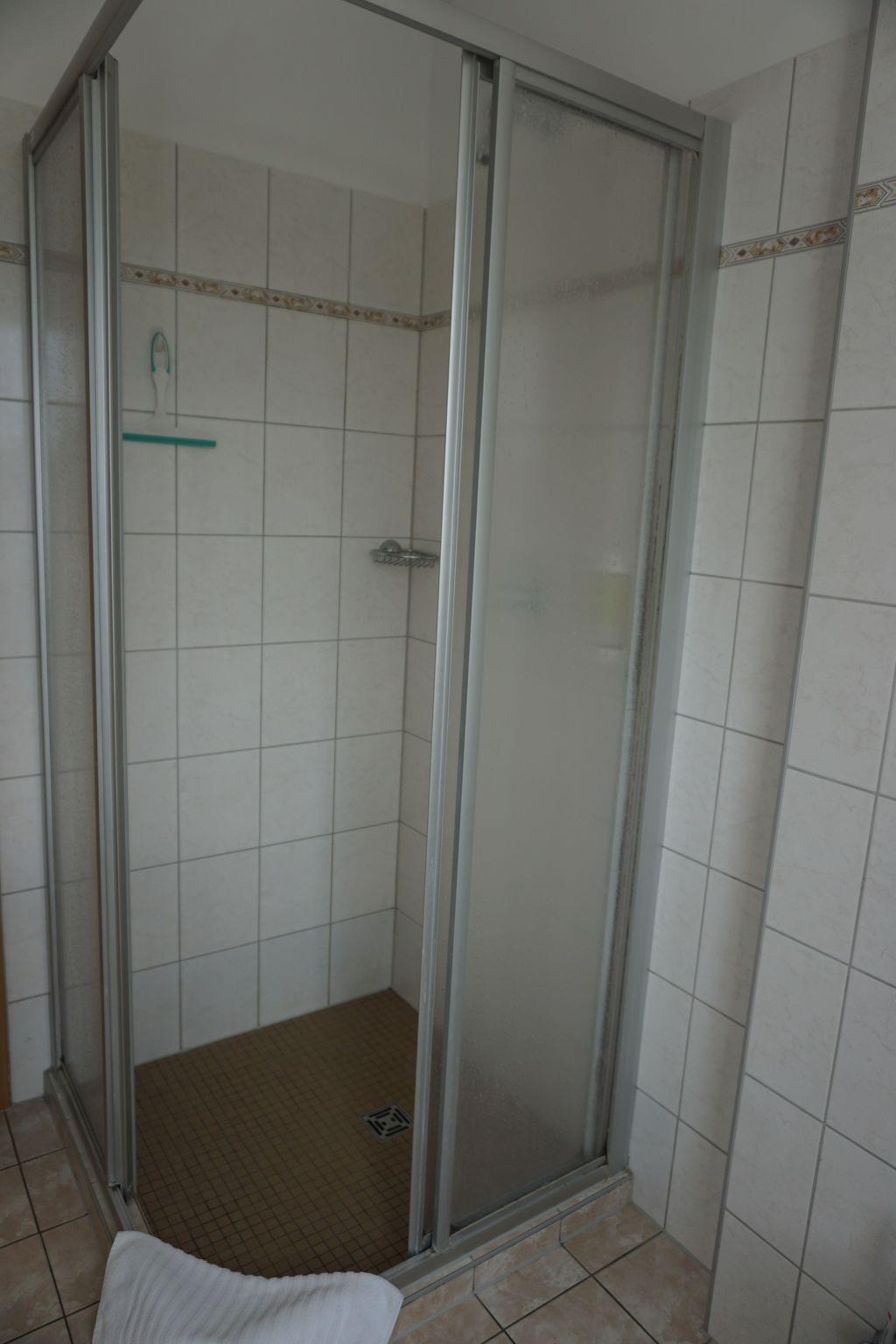 The maisonette flat is located in the neighbouring building. The size of this maisonette is 80 m² and has a living area with living room and open-plan kitchen, three bedrooms, which are reached by a spiral staircase, and a bathroom. Two bedrooms are furnished with two double beds (190 cm x 200 cm each) and the third has a bunk bed with two single beds (90 cm x 180 cm). You have a direct view of the lake from the bedrooms on the 1st floor. The kitchen is fully equipped with an oven, freezer, hob, fridge, dishwasher, toaster and kettle. In the living area you will find a seating area with chairs and a table and a sofa set. Here you can listen to music on the stereo system and use the flatscreen TV. The fireplace in the living area adds to the cosiness. The bathroom has a shower, washbasin and WC.