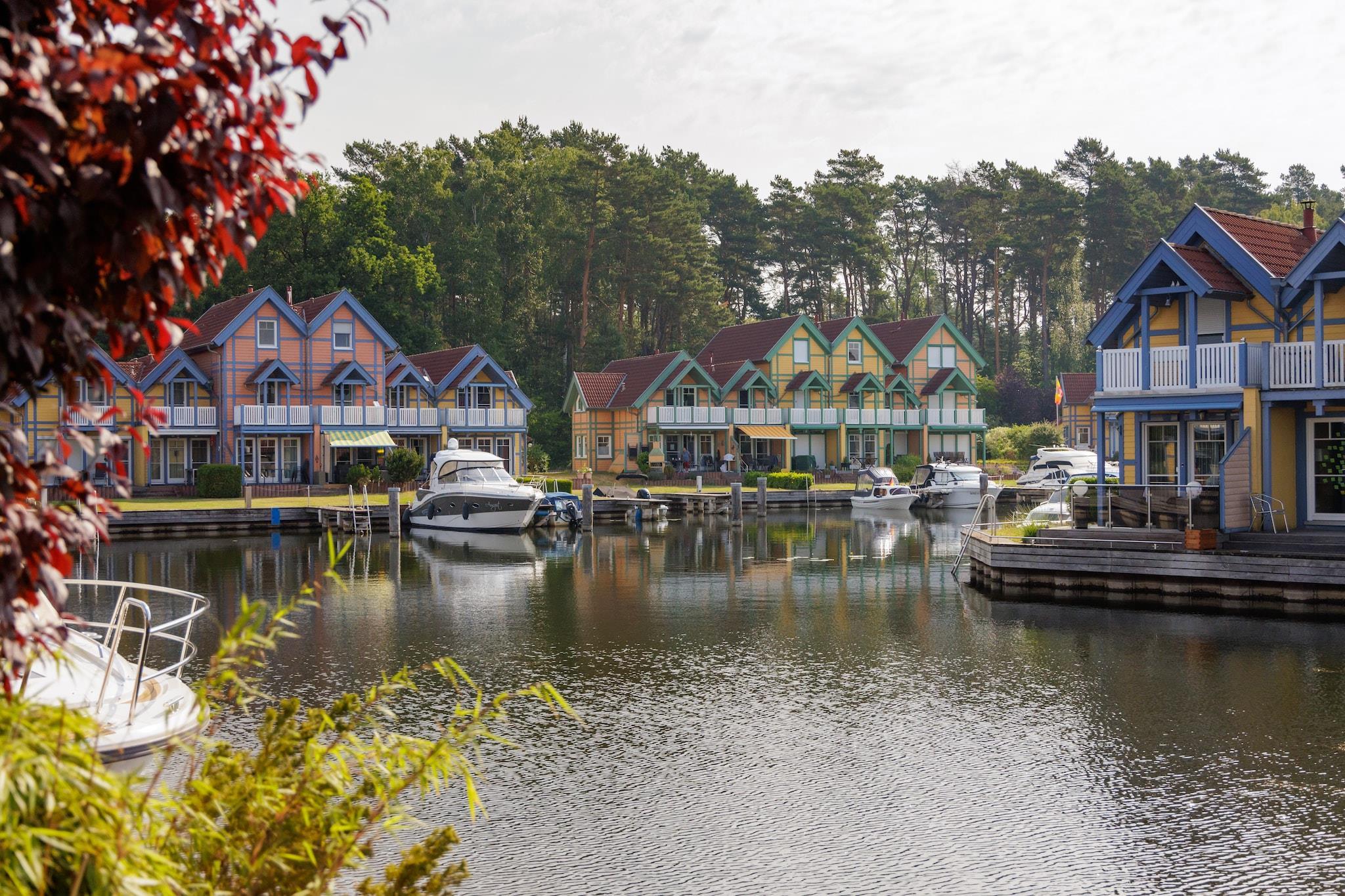 All the accommodation types at Hafendorf Rheinsberg are located on the water and many come with a private dock. They are discreetly arranged in rows, without seeming too imposing. You have the choice of 2 variants: a 4-person (DE-16831-08) or a 6-person (DE-16831-09). Both types are fully furnished in a neat and comfortable design. Each comes with a dishwasher and a cosy woodstove. There is a terrace and/or balcony with garden furniture for optimal enjoyment of the surroundings and outdoor living.