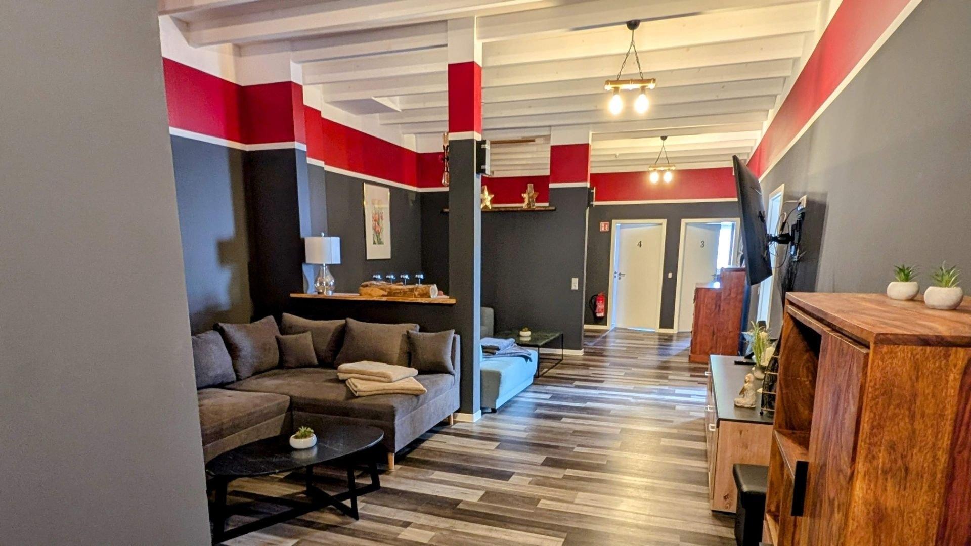 Unsere über 250m² große Ferienwohnung im Loft-Style. Mit 4 separaten Schlafzimmern, jeweils mit Duschbad und TV, einer Küche mit Essbereich und gemütlichem Gemeinschaftswohnzimmer. Perfekt für Reisen in Gruppen, unter Freunden oder in der Familie.