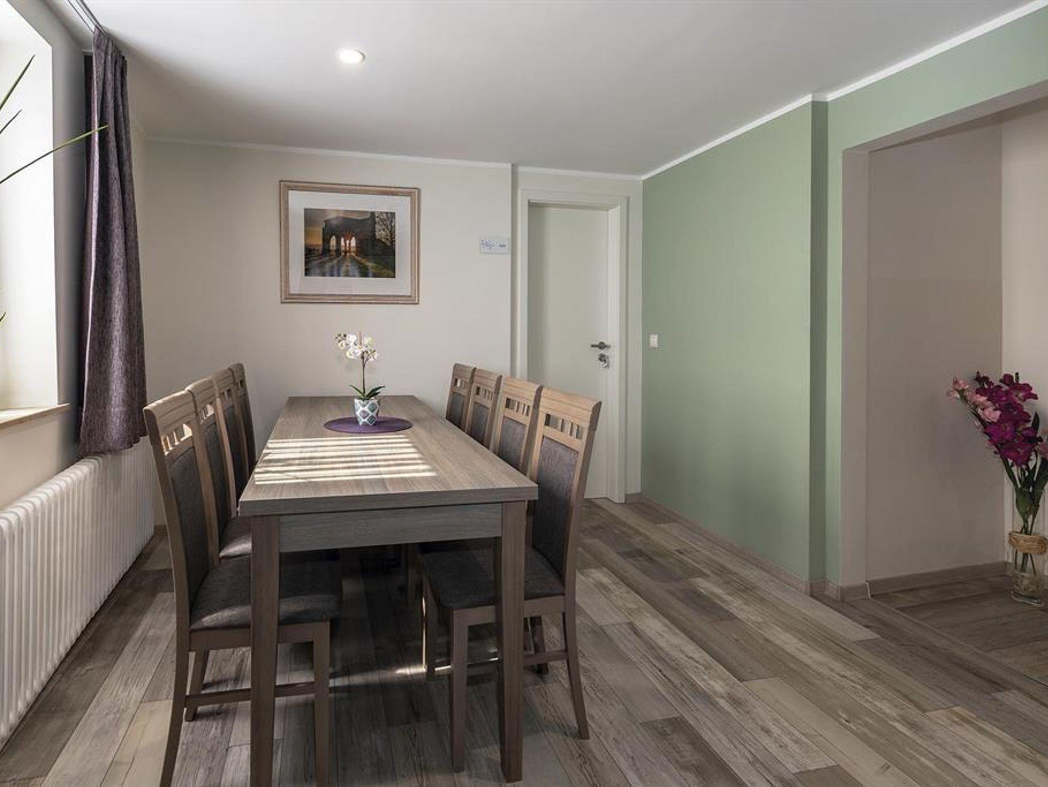 In der großzügigen Gemeinschaftsküche können Mahlzeiten z.B. Frühstück oder komplette Menüs zubereitet und eingenommen werden. Außerdem eignet sie sich auch als Kommunikationszentrum, genauso wie das zusätzliche Esszimmer. In diesen gepflegten Gemeinschaftsäumen kann man den Abend bei einem guten Glas Wein von ansässigen Winzern oder mit anderen mitgebrachten Getränken angenehm ausklingen lassen.
