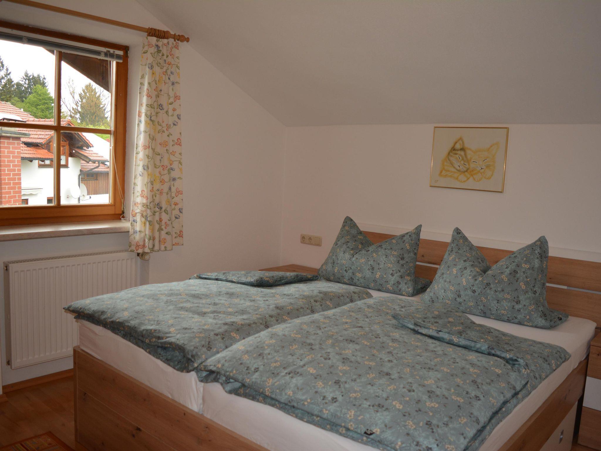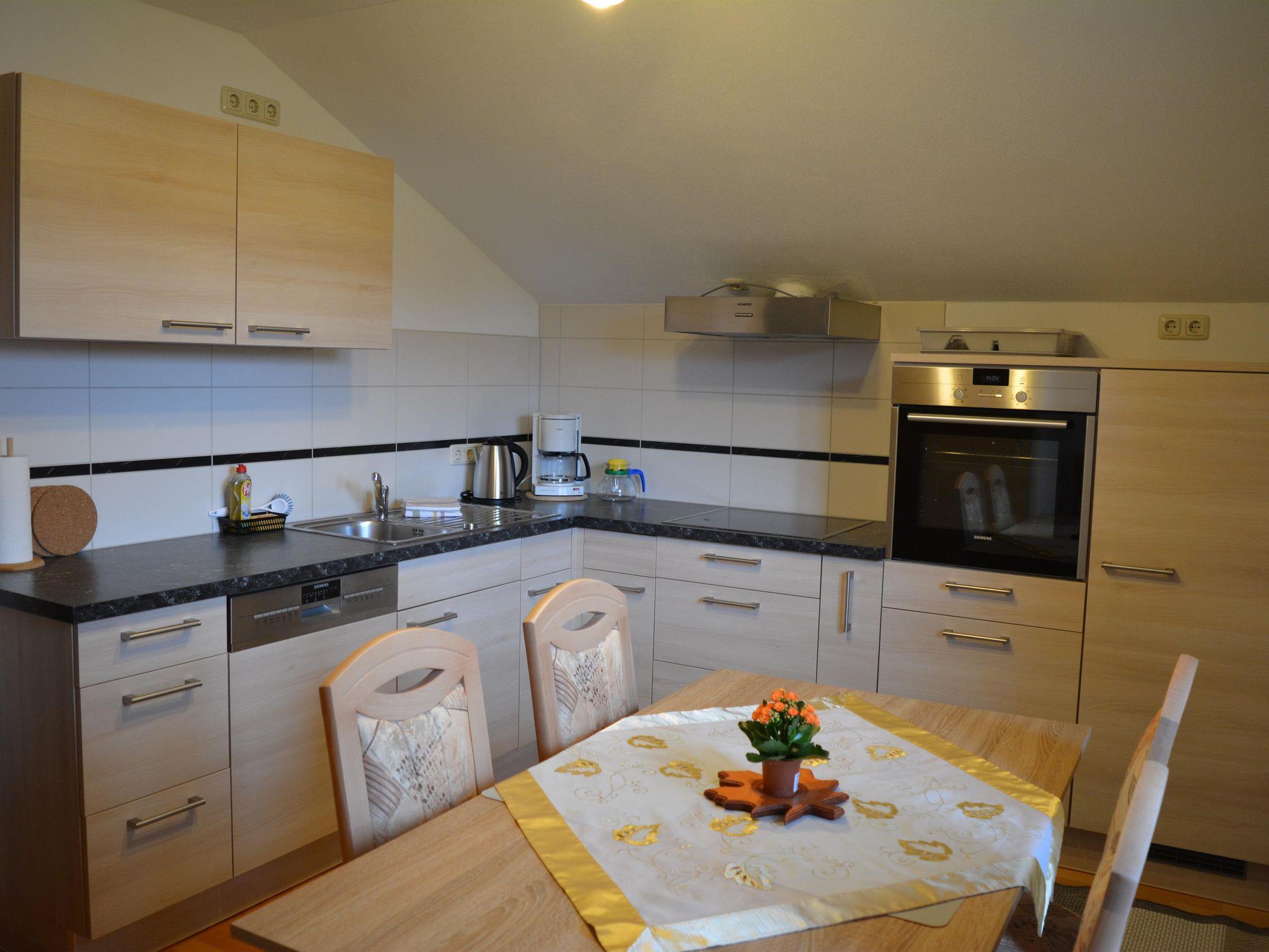 Die Ferienwohnung verfügt über 2 getrennte Schlafzimmer mit je einem Doppelbett, 2 getrennte Bäder mit je einer Dusche und WC, 1 großes Wohnzimmer mit einer Schlafcouch und Flachbildschirm und einer Küche mit einer modernen voll eingerichteter Einbauküche. Geschirrspüler, Backofen, Ceranfeld mit Dunstabzug, Kühlschrank mit Gefrierfach, Kaffeemaschine, ausreichend Geschirr, Besteck, Töpfe, uvm vorhanden. Zudem besitzt die Ferienwohnung 2 Balkone. Auf dem Südbalkon genießen Sie den Ausblick auf die faszinierende Bergwelt der Allgäuer Alpen und dem Schloß Neuschwanstein. Auf dem Westbalkon genießen Sie den Blick in die faszinierende Natur des Riedener Waldes, wo Sie Rehe beobachten können.