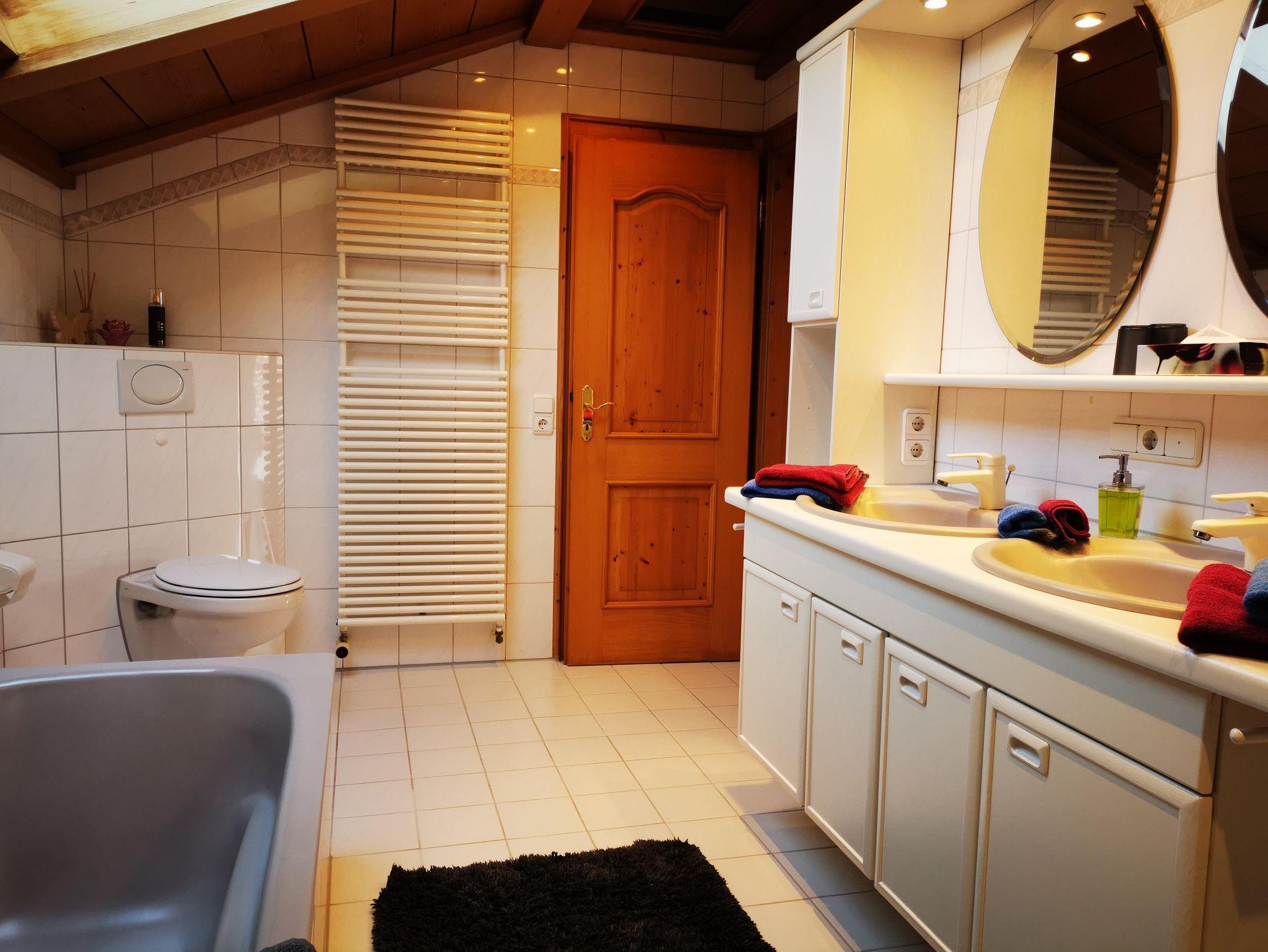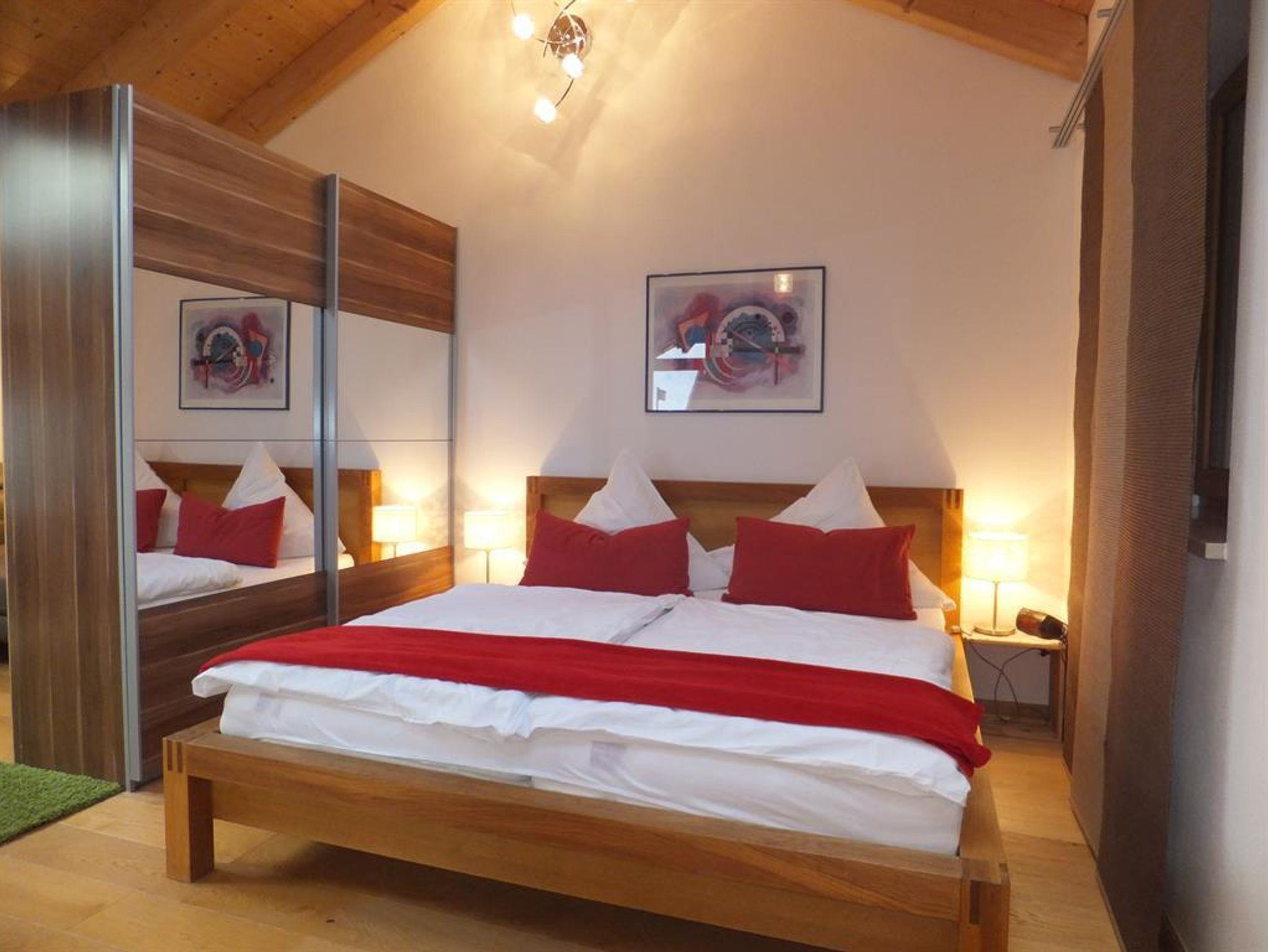 Verbringen Sie Ihren Urlaub in unserer neu eingerichteten 70 qm großen Ferienwohnung. Sie liegt im 1. Stock mit eigenem Zugang über eine Aussentreppe. Ostbalkon mit Sitzgelegenheit, Südbalkon, voll ausgestattete Küchezeile mit Spülmaschine, Backofen, Kaffeemaschine, Wasserkocher, Toaster. Wohn-Essbereich, Radio/CD, Flachbild-Sat-TV, 2 Schlafzimmer eins mit Doppelbett und 1 Schlafzimmer mit Einzelbett, Bad mit Badewanne, Dusche und WC, kostenloses Wlan. Für Fahrräder gibt es einen überdachten, abschließbaren Platz.