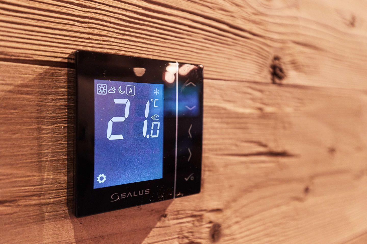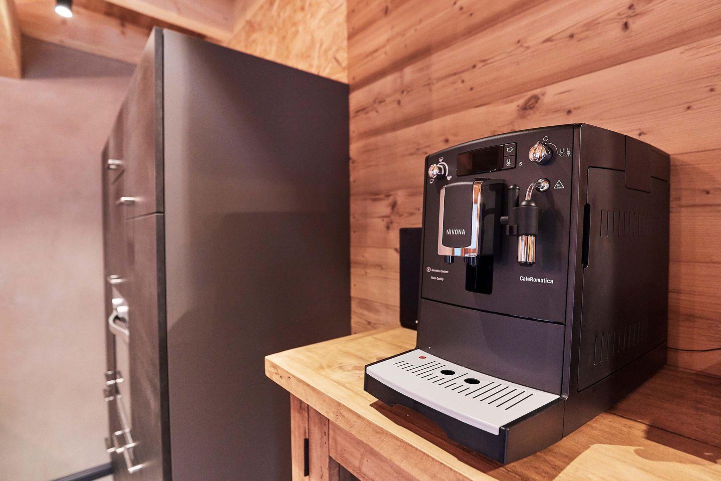 Die moderne, offene Küche ist mit einem Kaffeevollautomaten, Wasserkocher, Spülmaschine, Kühlschrank mit Gefrierfach sowie einem Backofen und einer Mikrowelle ausgestattet. Das angrenzende Wohn-/Esszimmer verfügt über einen E-Kamin, einen 65-Zoll-Flachbildfernseher und eine HiFi-Anlage.