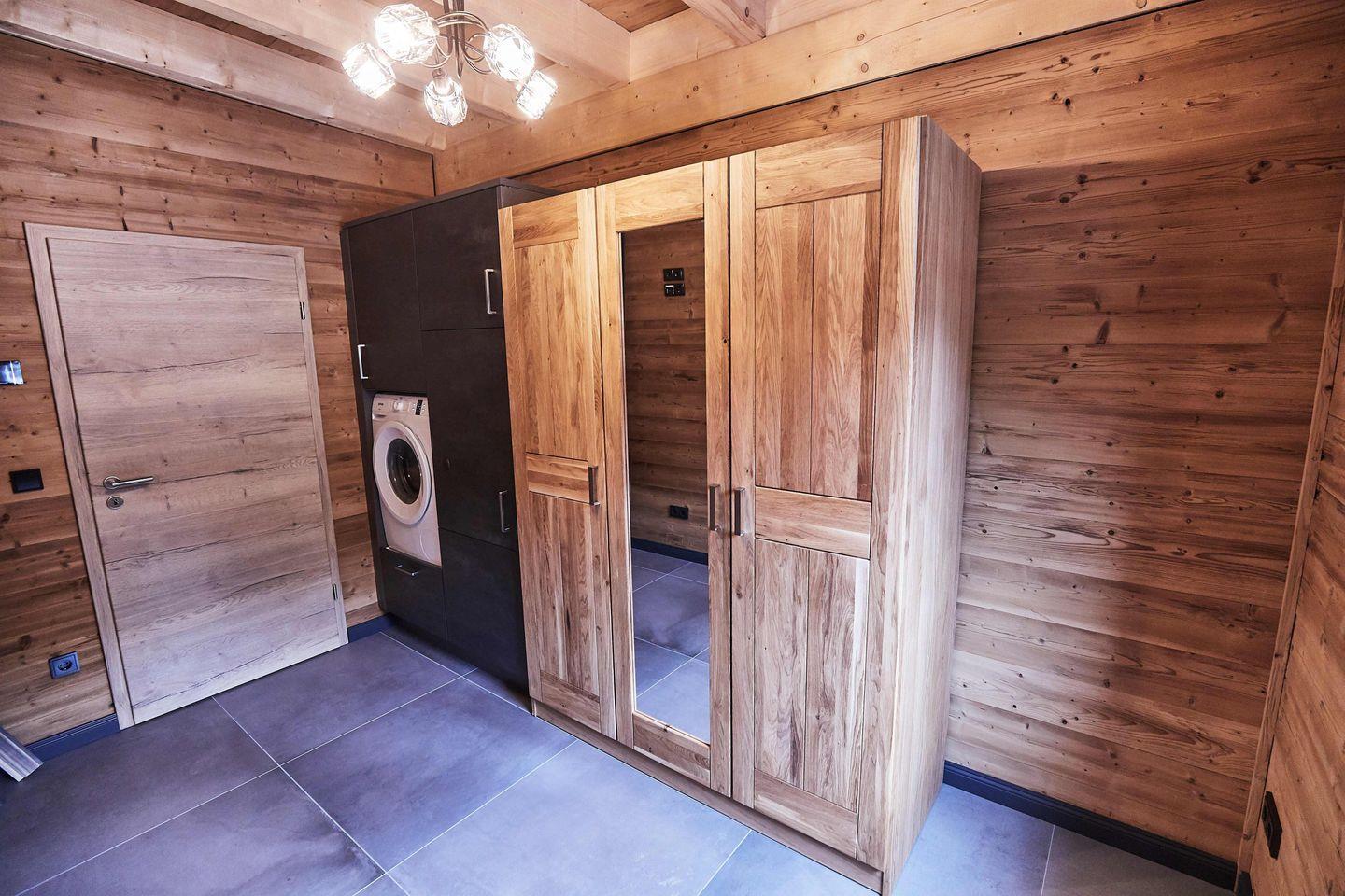 Das Kinderzimmer bietet ein Einzelbett (90x100) und einen Kleiderschrank. Eine Waschmaschine und ein Hauswirtschaftsschrank mit Bügeleisen und Bügelbrett sind ebenfalls vorhanden.