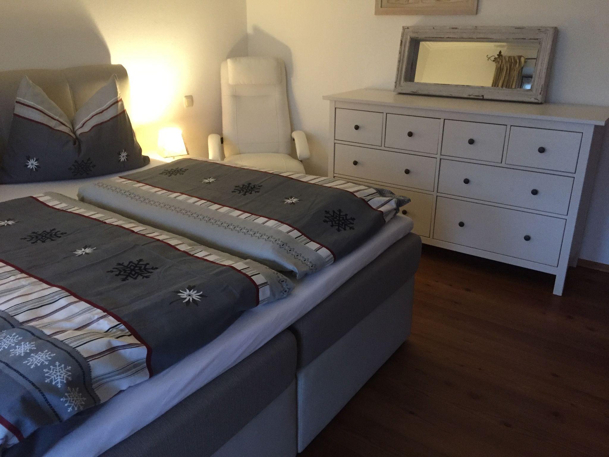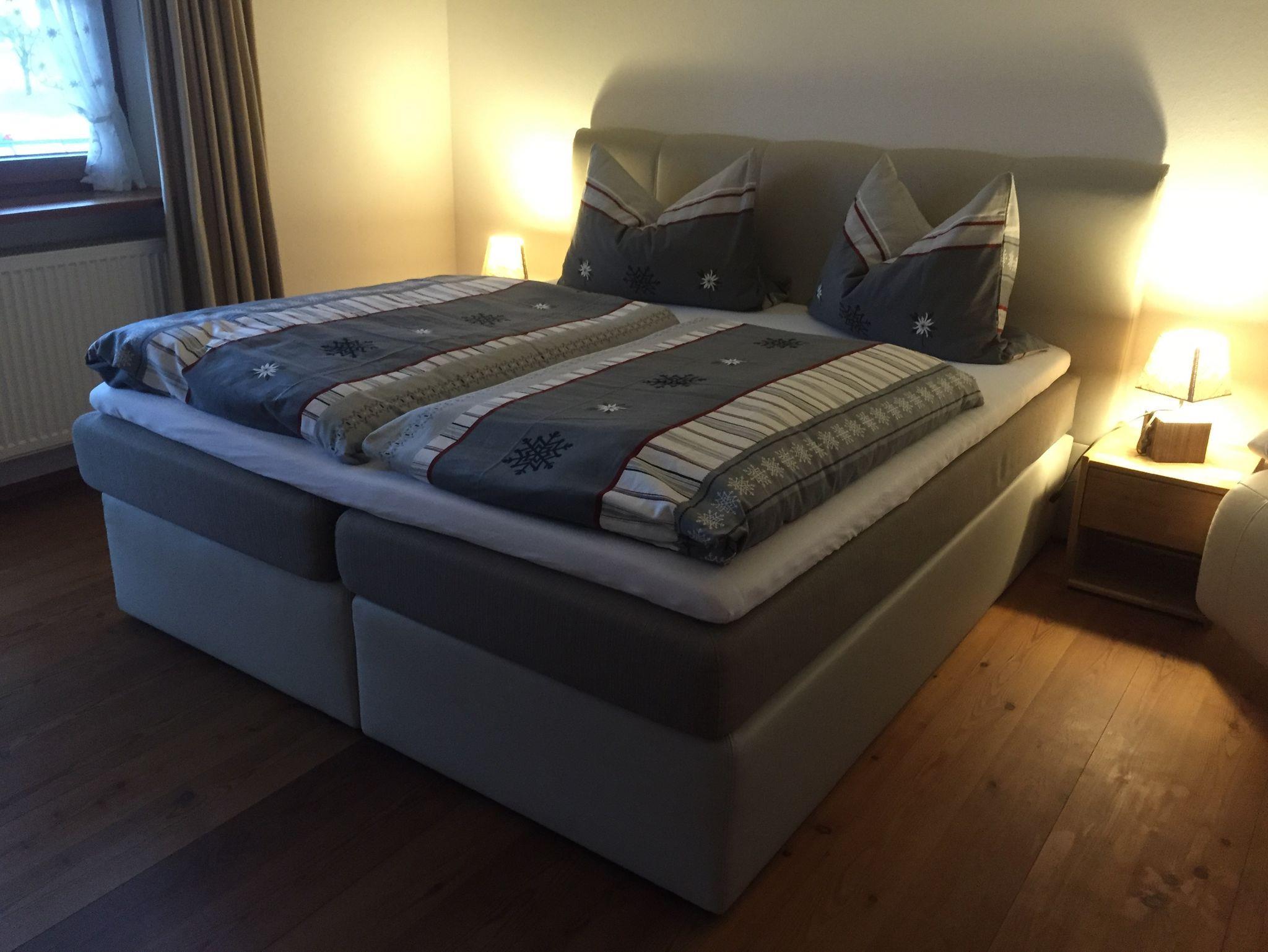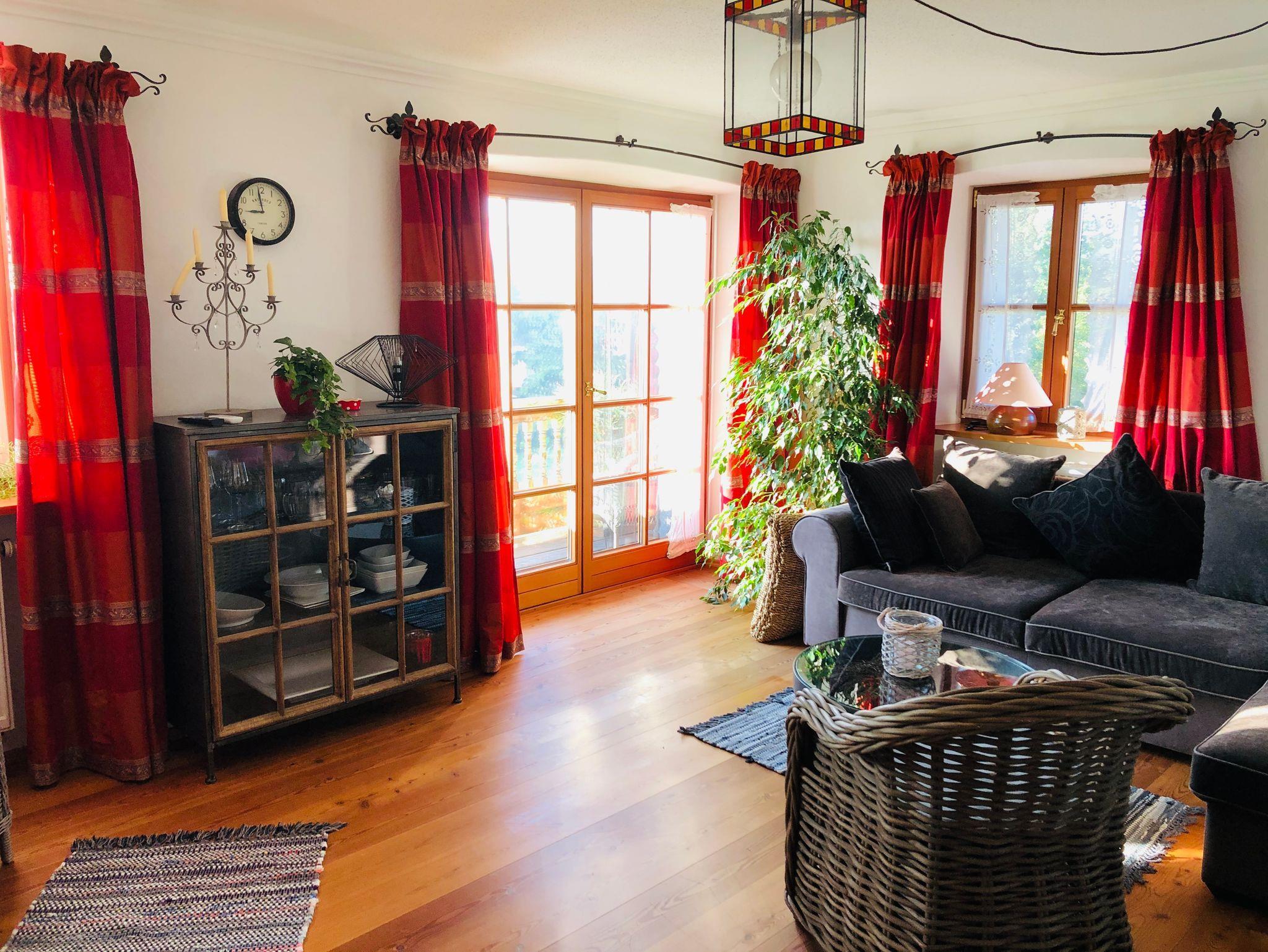 Unsere Ferienwohnungen bieten von Terrasse oder Balkon einen Blick auf die Chiemgauer Alpen. Auf 105qm bieten unsere Wohneinheiten 2 Schlafzimmer, ein Bad mit Badewanne und Dusche, einen Flachbild-Sat-TV und ein großes Wohnzimmer. Eine vollausgestattete Küche und auch eine Waschmaschine gehören zu beiden Wohnungen. Handtücher und Bettwäsche werden im Apartment gestellt.