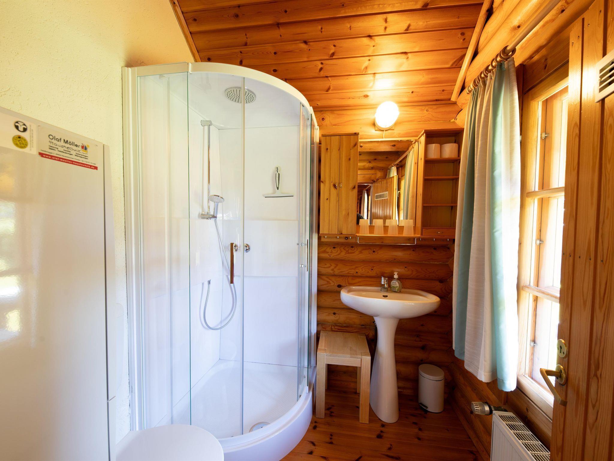 Bei dem Ferienhaus handelt es sich um ein gemütliches finnisches Blockhaus (ca. 50 m²) auf 650-m²-Grundstück im Ferienpark Alfsee.
