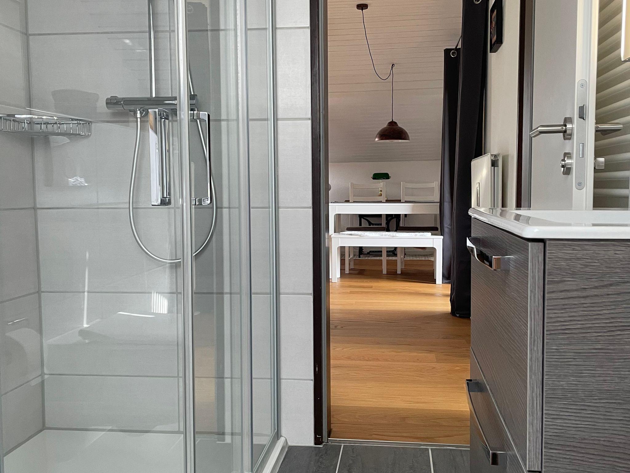 Das Apartment ist stilvoll eingerichtet und bietet modernen Komfort in einer entspannten Atmosphäre. Die Eckdaten: Apartment im DG, 65 qm, großer Balkon mit Bergblick; 1 Schlafzimmer mit Schrank und Doppelbett (180 x 200 cm); Wohnzimmer mit Schlafcouch (140 x 200 cm) und Essbereich; Küche komplett ausgestattet mit Geschirrspüler; Bad mit Dusche, WC, Fön und Waschmaschine; SAT/Smart-TV; WLAN und 1 Parkplatz kostenlos; abschließbare Fahrrad-Garage; Bettwäsche und Handtücher zur Verfügung.