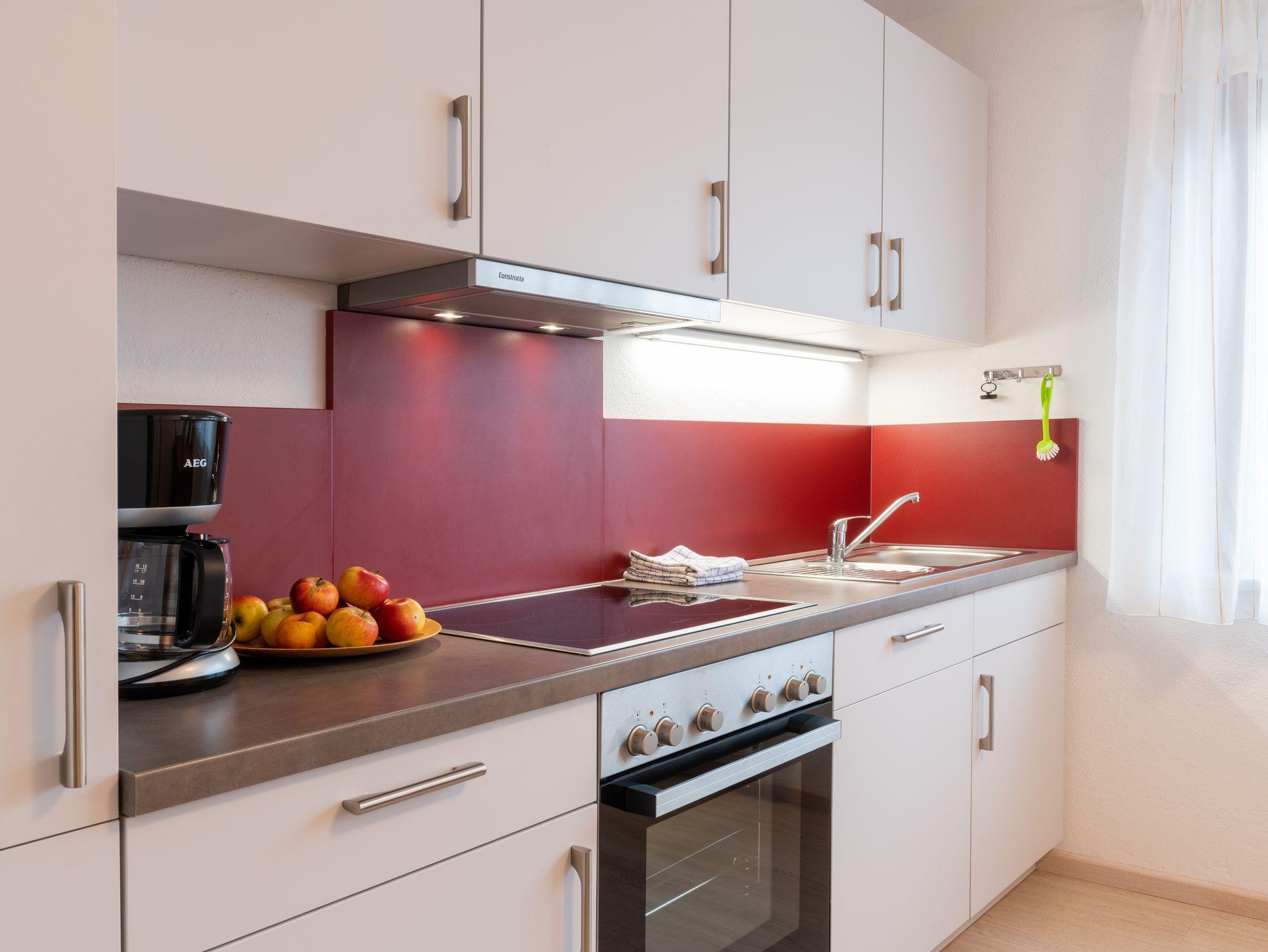 In der gut ausgestatteten Küche finden Sie alles, was Sie für ein ausgiebiges Frühstück oder ein selbst zubereitetes Abendessen brauchen – perfekt für Selbstversorger.