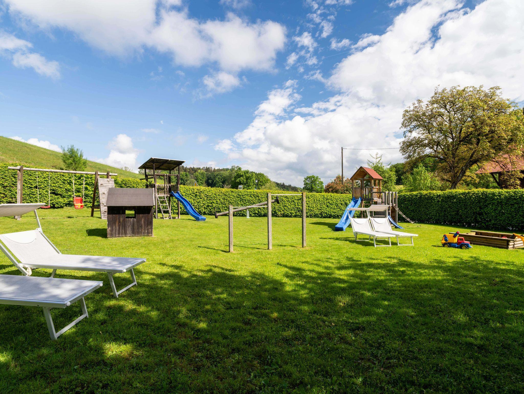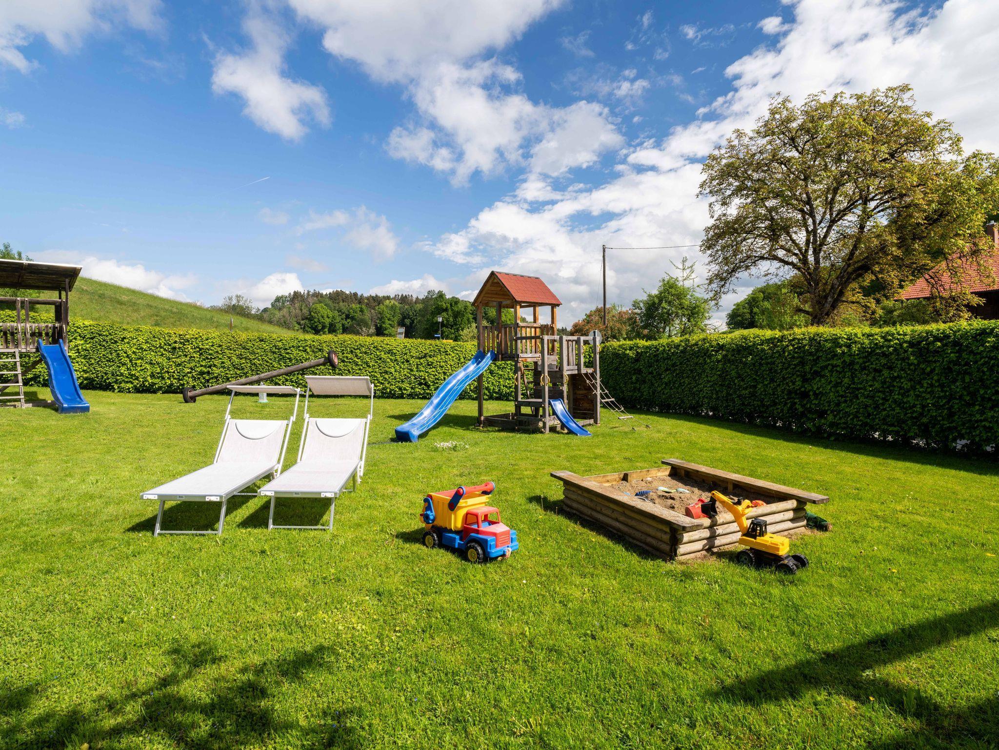 Während sich die Kinder auf dem Trampolin, der Schaukel oder im Sandkasten austoben, genießen Eltern entspannte Stunden unter freiem Himmel – umgeben von der traumhaften Naturkulisse des Chiemgaus.