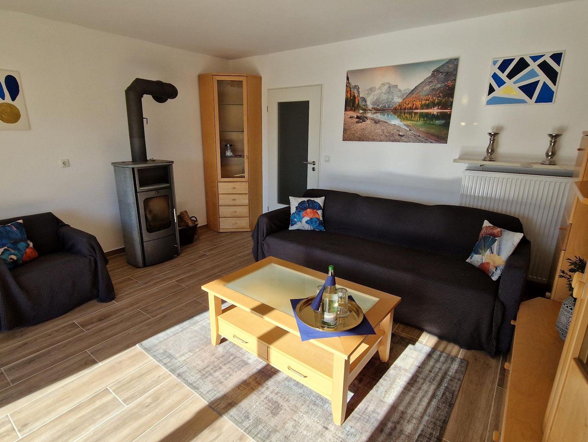 Die Ferienwohnung hat eine voll ausgestattete Küche, Ess- und separates Wohnzimmer mit Smart-TV und Sofa mit Schlaffunktion. Großem Schlafzimmer mit Doppelbett (2 Pers.), Badezimmer mit Dusche und Badewanne, sowie einer Waschmaschine. Desweiteren einen Sportraum bzw. ein zweites Schlafzimmer mit einem 140cm Doppelbett und einem Einzelbett (3 Pers.) und natürlich eine separate Toilette. Eine abschließbare Garage mit Lagermöglichkeit für Fahrräder u.ä. steht den Gästen ebenso wie die große Terrasse mit weitläufiger Liegewiese und einem großem Garten mit einer luxuriösen Outdoorlounge zur Verfügung.
