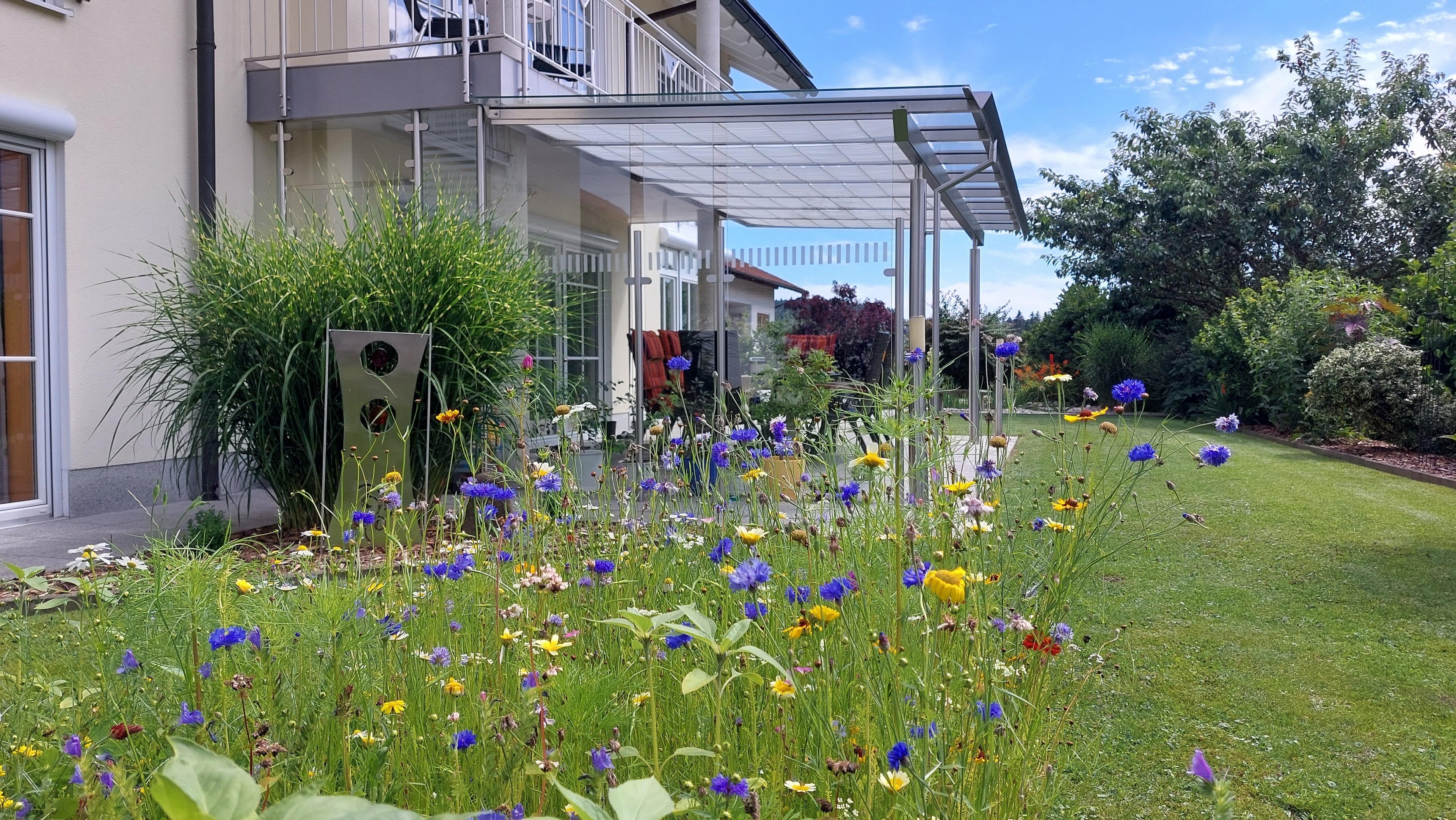 - Fahrräder können in der verschlossenen Doppelgarage abgestellt werden.