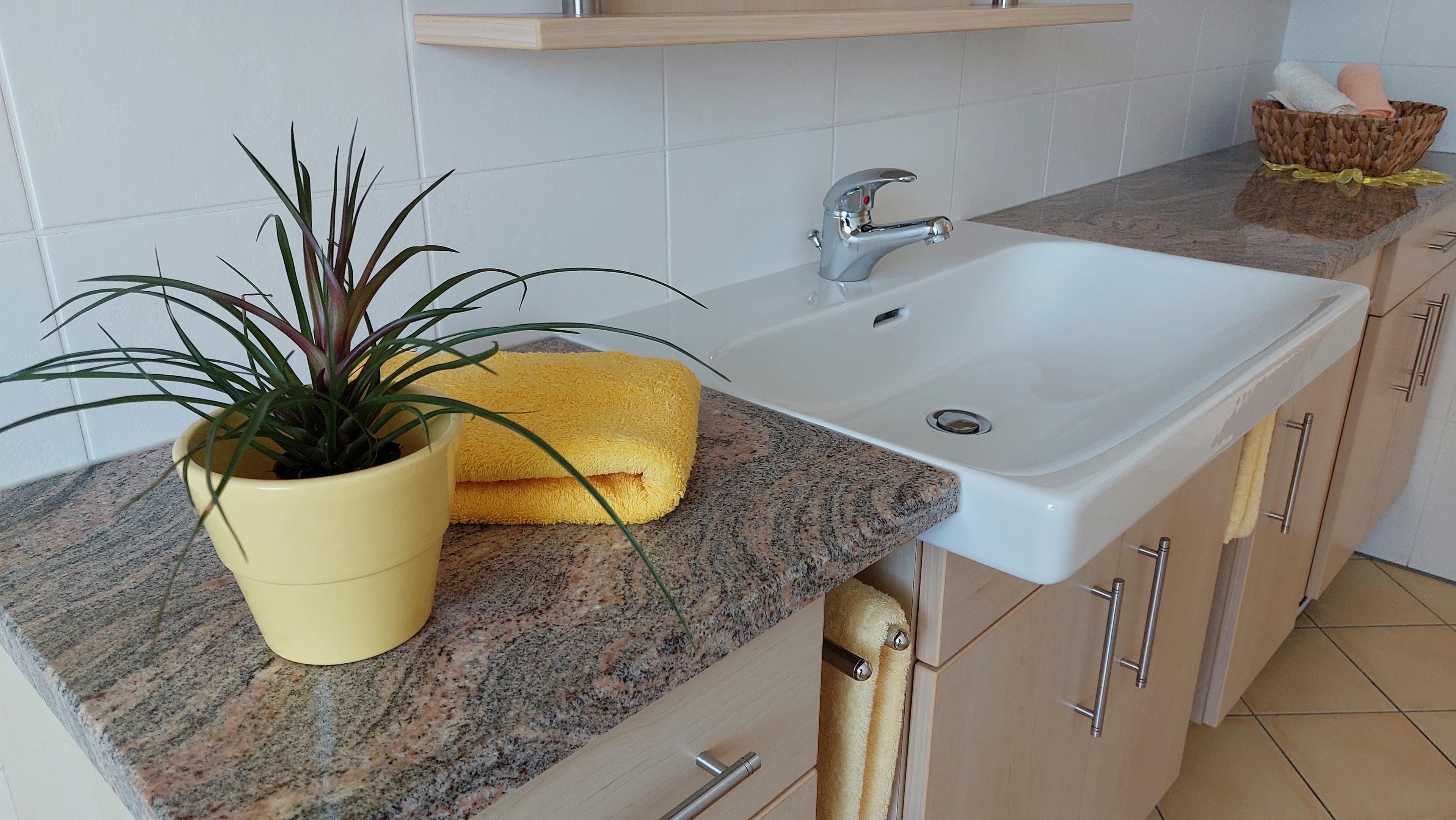 - Badezimmer: Badewanne mit Regendusche und Duschvorhang, WC, Föhn.