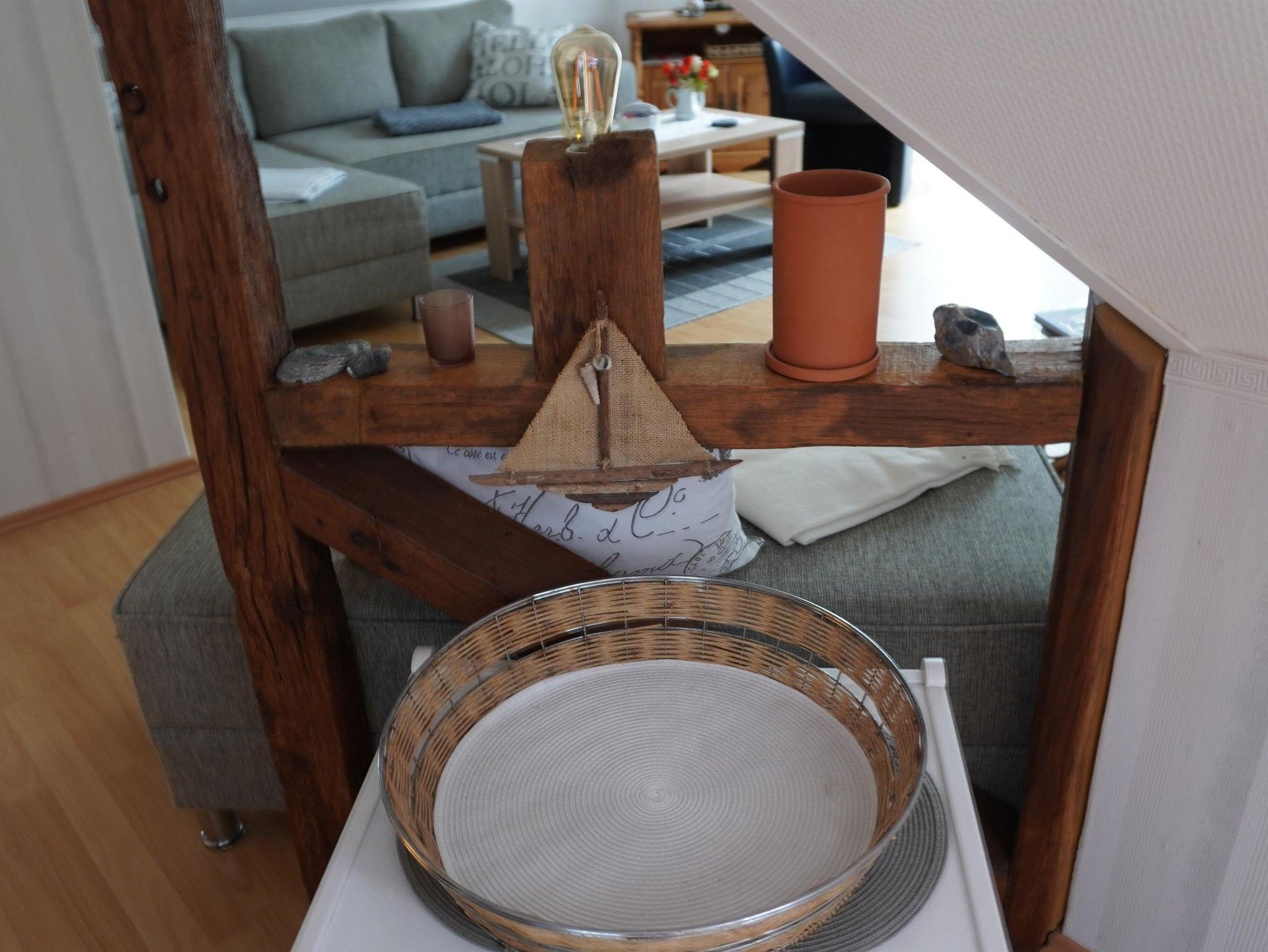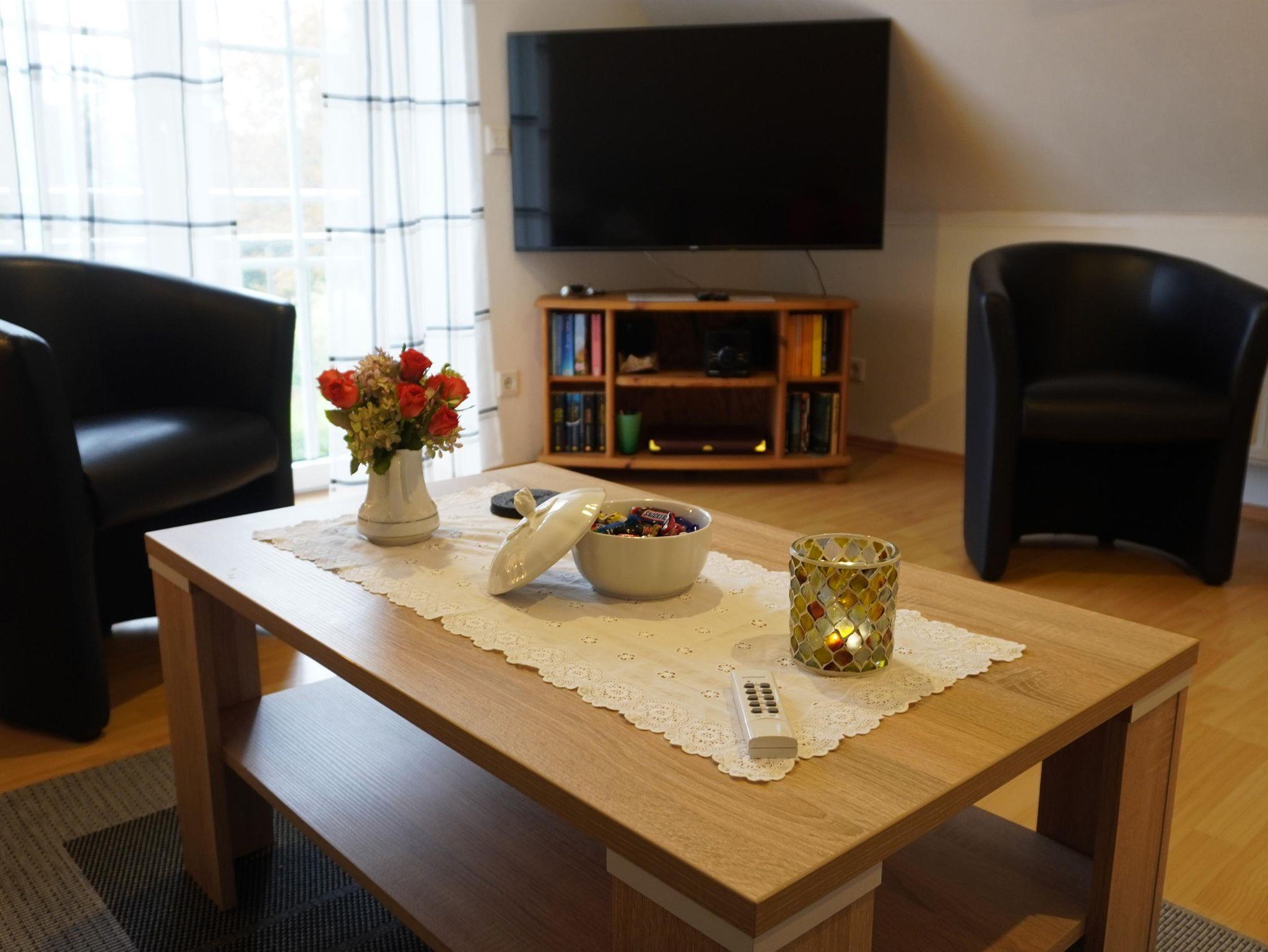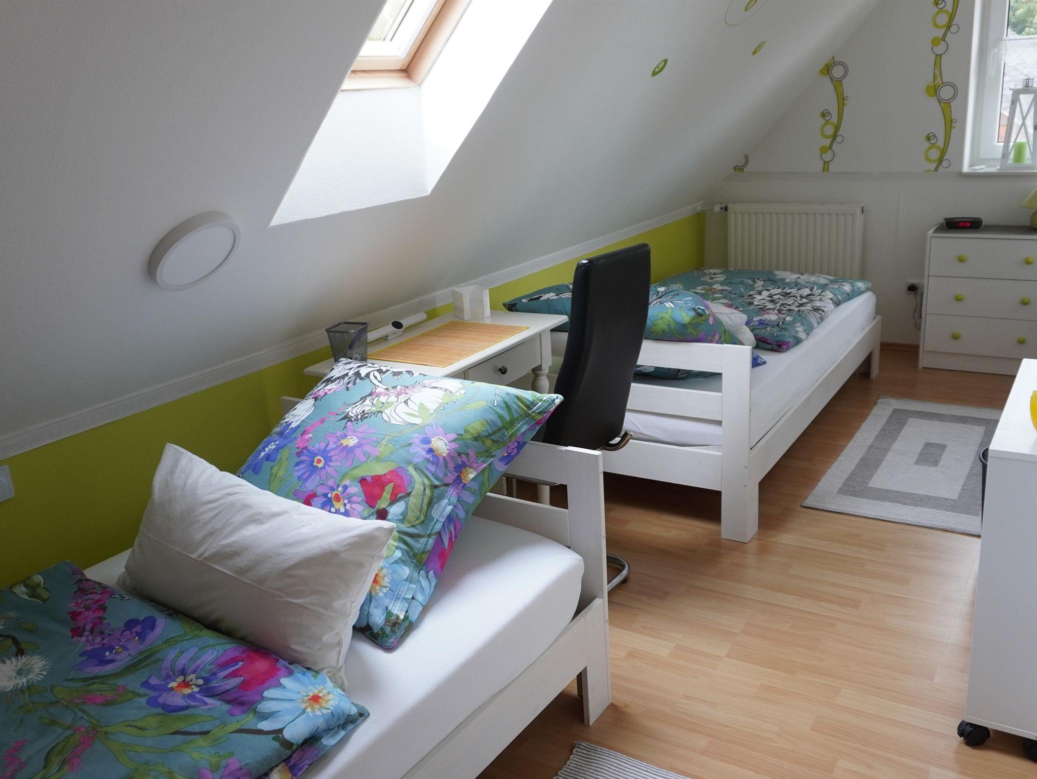 Treten Sie ein in unsere, mit viel Liebe zum Detail, eingerichteten Ferienwohnung. Auf 70m² erwarten Sie ein gemütlicher Wohn-Essbereich mit integrierter Küchenzeile, die keine Wünsche offenlässt. Als Schlafdomizile werden Sie ein Zimmer mit Doppelbett (1,80 x 2,00m) sowie ein weiteres mit zwei Einzelbetten (1,00 x 2,00 m) vorfinden. Die Betten sind bereits bei Anreise bezogen und auch Ihre Handtücher dürfen Sie zuhause lassen. Das Badezimmer ist mit Dusche/WC und einer Badewanne ausgestattet und zusätzlich ist noch ein Gäste-WC vorhanden. Unsere kleinen Gäste dürfen sich über ein Reisebett sowie einen Kinderhochstuhl freuen. Außerdem bieten wir Ihnen verschiedene Spiele sowie für Leseratten Bücher an. An kälteren Tagen besteht die Möglichkeit einen Kaminofen zu nutzen. Das Holz hierfür stellen wir gerne bereit. Die Mitnutzung der Waschmaschinen um dem Trockner runden das Angebot der Ferienwohnung ab.