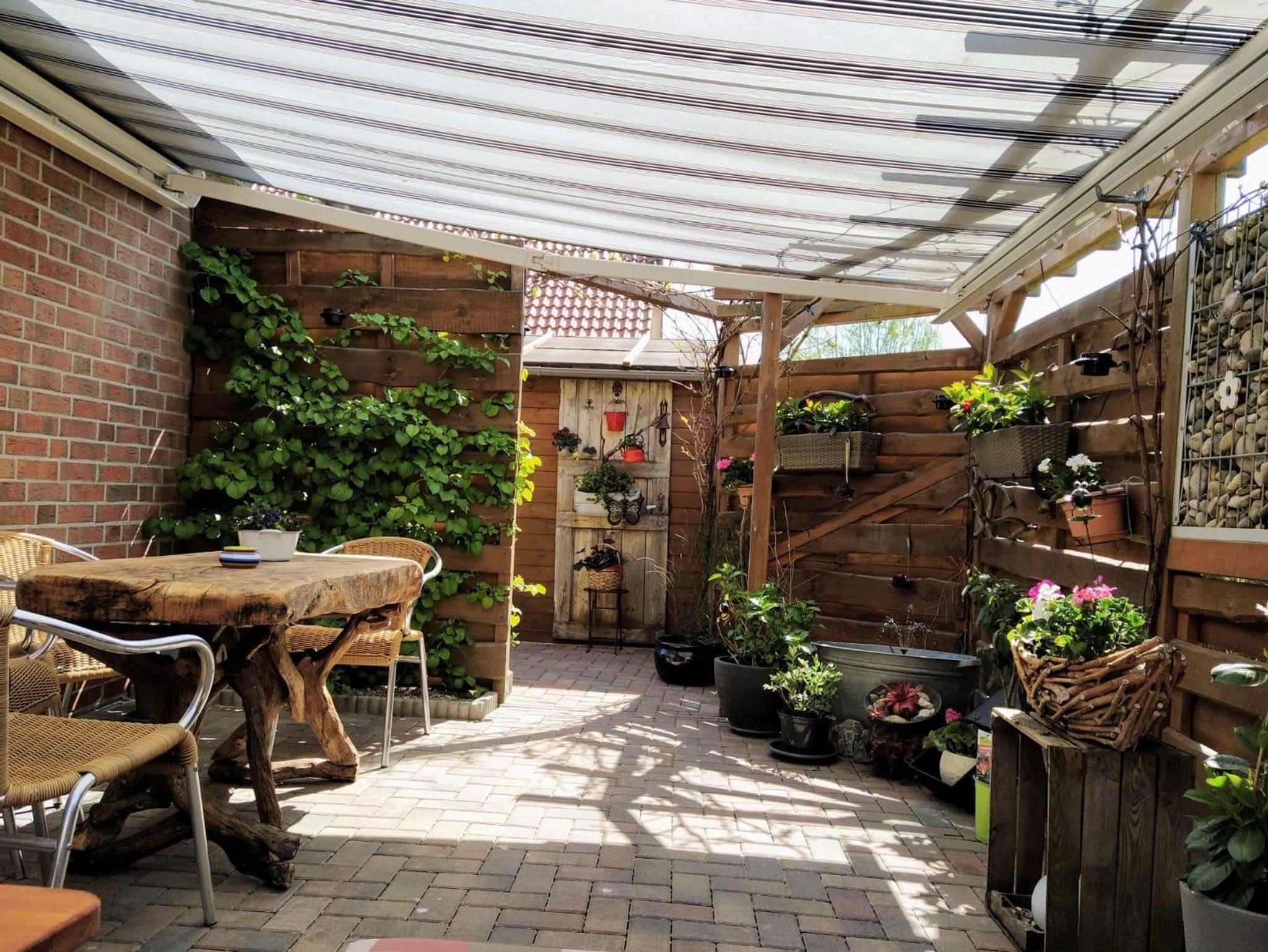 Kommen Sie zu uns und genießen Sie die ruhige Lage sowie viele Annehmlichkeiten in und um unsere Ferienwohnung. Zum Außenbereich gehören eine zum Westen ausgerichtete Terrasse mit Gartenmöbeln und Strandkorb. Eine Markise schützt Sie hier vor der Sonne. Außerdem stellen wir Ihnen zum Grillen einen Gasgrill zur Verfügung. Für ein Frühstück im Freien, können Sie die Veranda unseres Gartenhäuschens nutzen. In diesem befindet sich auch eine kleine Küche, so dass sie das Geschirr getrost in der Ferienwohnung lassen können. Die Schlafzimmer können mit Außenjalousien verdunkelt werden. Ein PKW-Einstellplatz befindet sich direkt am Haus. Und Ihre mitgebrachten Fahrräder können in einem separaten Abstellraum sicher verwahrt werden.