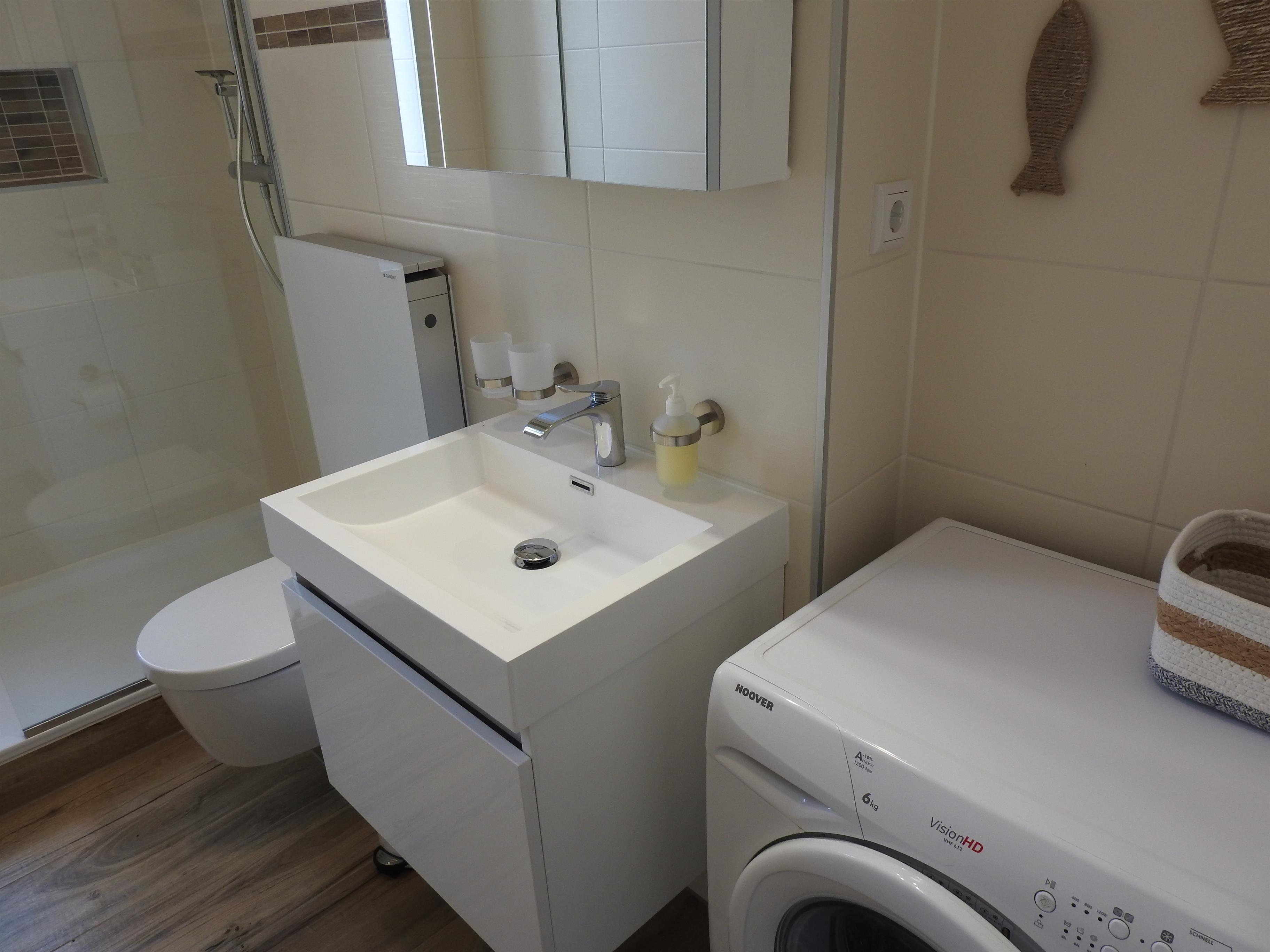 Das Nichtraucher-Appartement befindet sich in der ersten Etage und ist 70m² groß. Zur hochwertigen Ausstattung der Wohnung gehören Parkettfußböden, Sat-TV und Stereoanlage im Wohnzimmer sowie eine gemütliche Sitzecke. Es ist ein modernes Duschbad mit einer großen Dusche vorhanden. Im Bad befindet sich eine Wachmaschine. In der kleinen und feinen Wohnküche befindet sich alles was man braucht. In der schönen Küchenzeile sind ein Backofen, Kaffeeautomat, Toaster und vieles mehr vorhanden. Das Schlafzimmer ist ruhig gelegen und hat ein großzügiges Doppelbett.