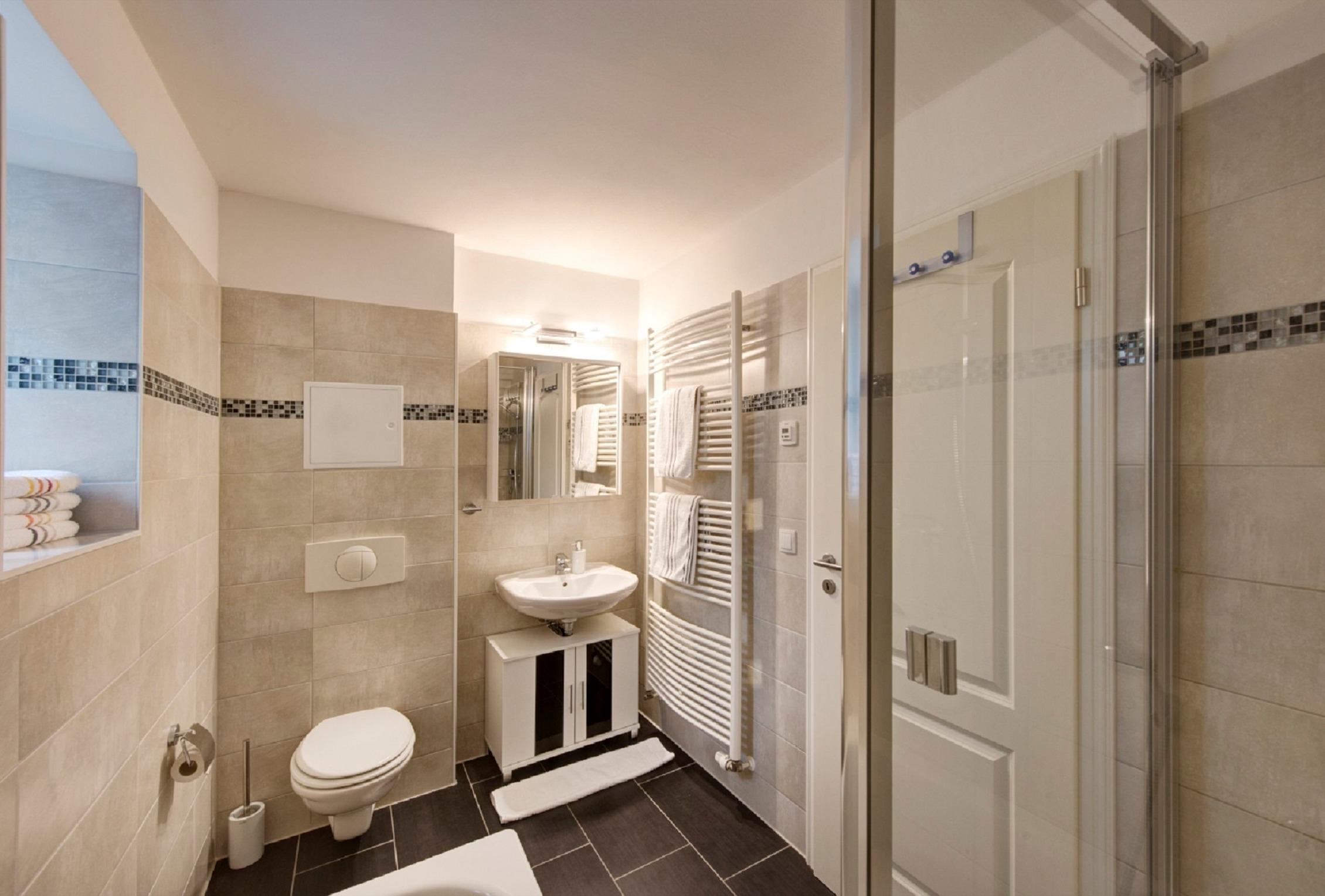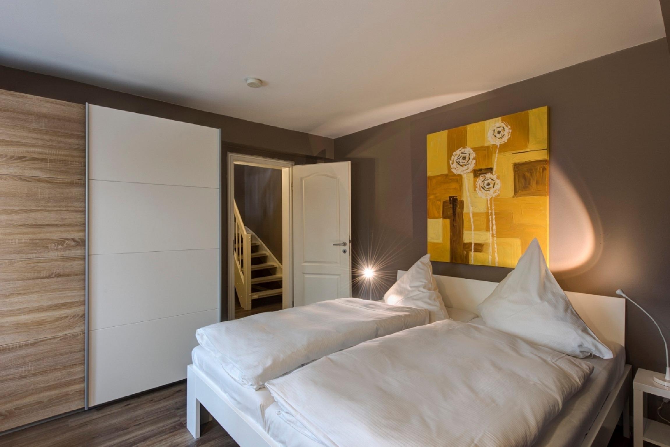 In der unteren Ebene befinden sich ein Schlafzimmer mit einem Doppelbett, ein gesonderter Raum mit einer Schlafcouch und das Wannenbad mit separater Dusche. Vom Schlafzimmer aus haben Sie Zugang zu einer kleinen Terrasse. Die Wohnung verfügt über eine Video-Gegensprechanlage. Die Villa Katharina ist eine aufwendig sanierte Jugendstilvilla. Sie befindet sich direkt am Kurpark. Der Weg zum Strand beträgt nur eine Minute.