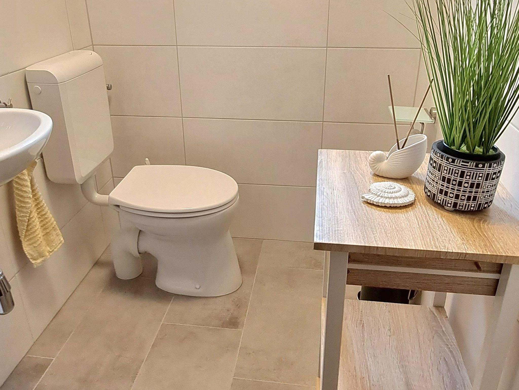 Unsere Ferienwohnung Engels verfügt neben dem Badezimmer mit ebenerdiger Dusche auch über ein Gäste-WC, somit haben die Gäste, die in dem zweiten Schlafzimmer übernachten, ein eigenes WC und müssen nicht durch das andere Schlafzimmer um die Toilette zu nutzen.