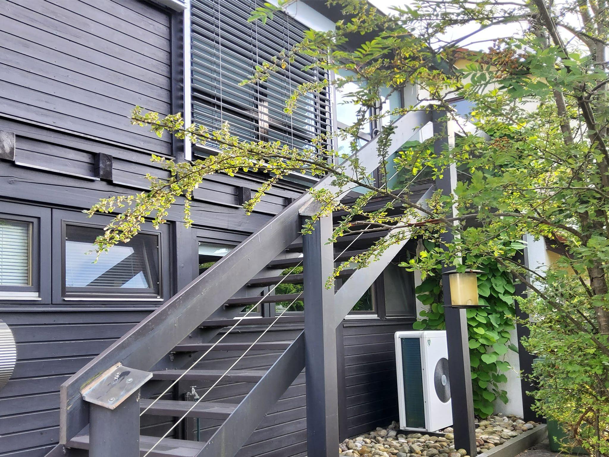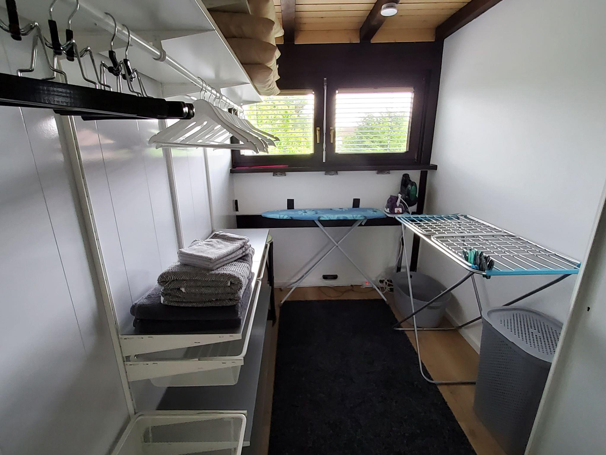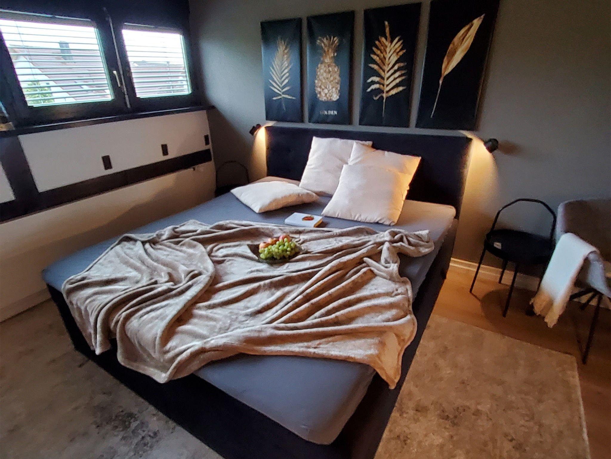 Schlafen wie im Hotel – Wohnen wie zuhause! Diese stilvoll eingerichtete Wohnung für bis zu drei Personen befindet sich im ersten Stock eines charmanten Zweifamilienholzhauses mit separatem Zugang über eine Außentreppe. Helle Räume, elegante Holzbalkendecken und Glasschiebetüren schaffen ein behagliches Wohngefühl. Das Wohn-/Schlafzimmer bietet ein hochwertiges Boxspringbett, das auch als Daybed genutzt werden kann, eine gemütliche Sitzecke, TV, DAB-Radio, Ventilator, Insektenschutz und effektive Verdunkelung. Das Ankleidezimmer überzeugt mit viel Stauraum und Extras wie Bügelbrett, Bügeleisen und Wäscheständer. Das Bad ist modern ausgestattet mit Dusche, WC, Waschtisch mit Auszügen, Kosmetikspiegel, Duschhocker und Föhn. Die großzügige Wohnküche bietet alles für den Alltag: vollständige Einbauküche mit allen Geräten, Geschirr, Nespresso-Maschine, Mikrowelle und Waschtrockner sowie eine zusätzliche Schlafcouch. Außerdem steht ein teilausgebauter Dachboden zur flexiblen Nutzung. Ob als Abstellraum, Fitnessbereich oder Homeoffice – Sie gestalten Ihren Raum individuell. Wir freuen uns auf Ihren Besuch!