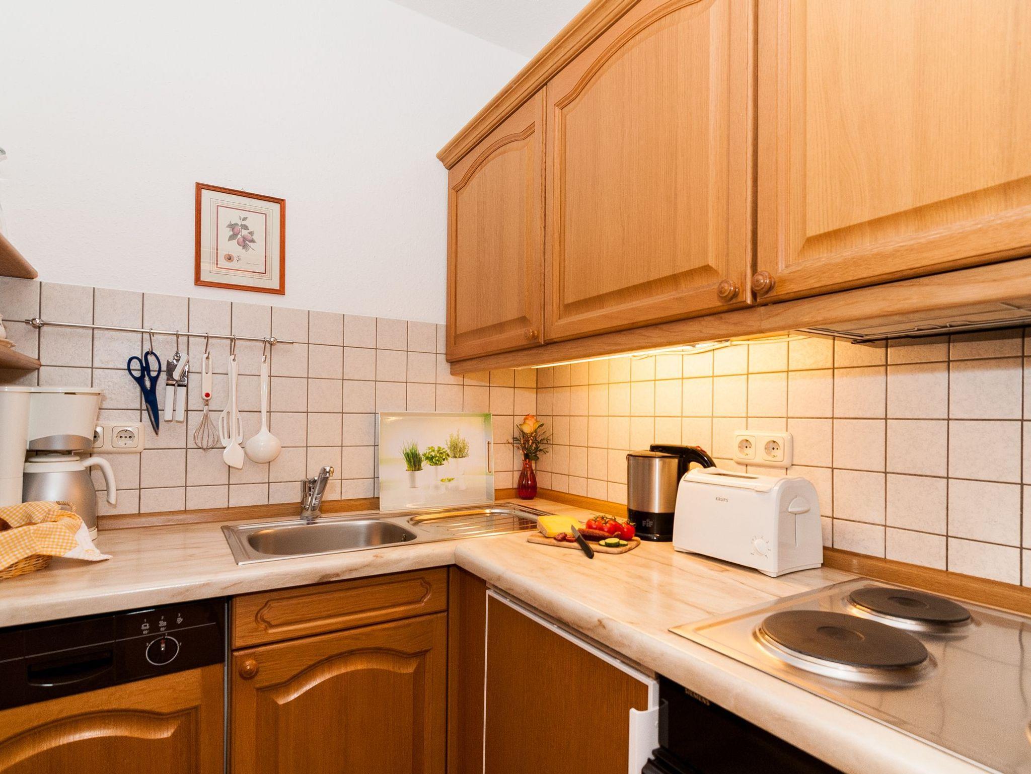 • separate und voll ausgestattete Küche mit Kühlschrank, Backofen, 4-Platten Herd, Spülmaschine, Kaffeemaschine, Wasserkocher, Toaster
