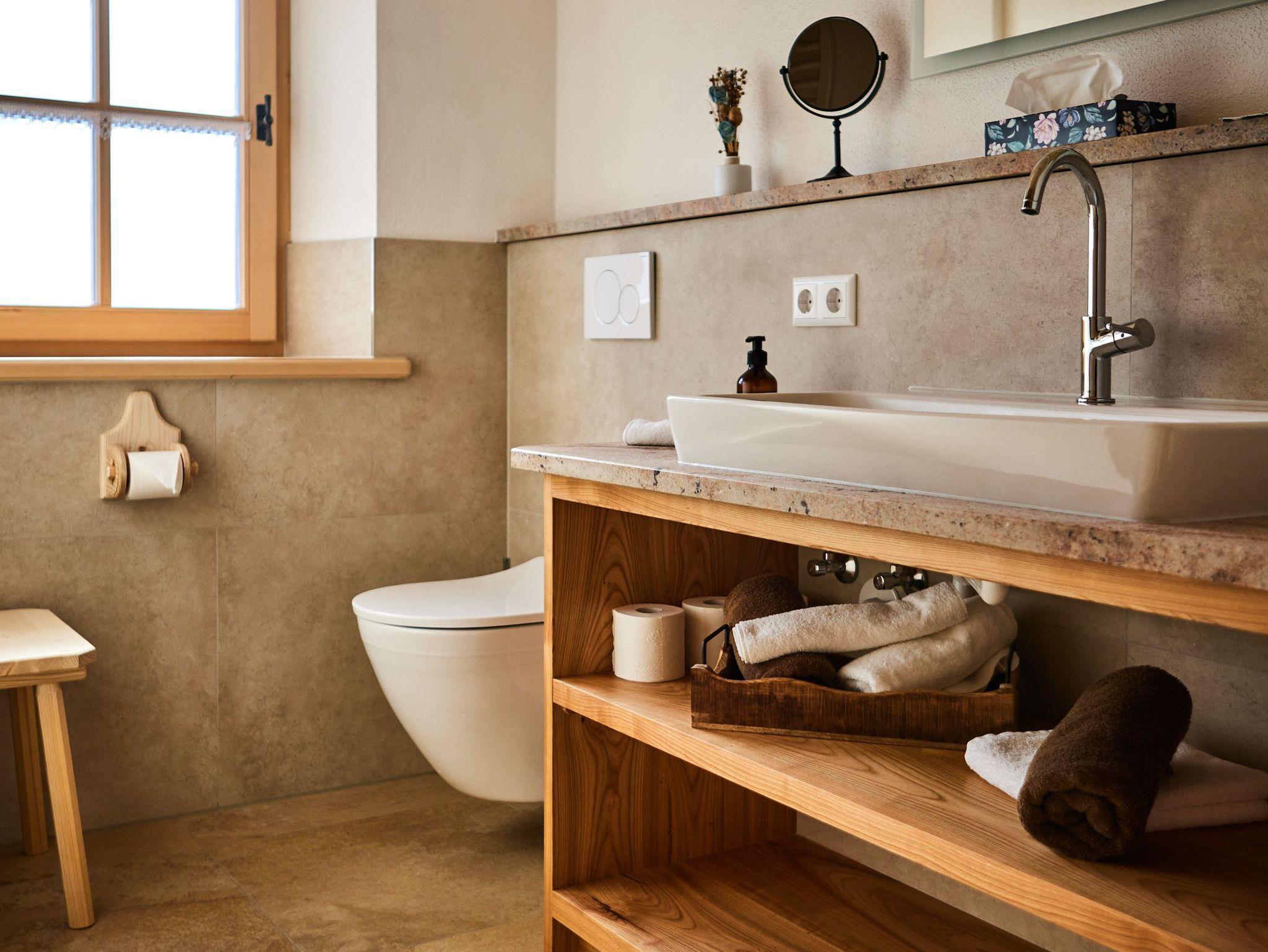 Die Ferienwohnung ist mit viel Holz von unseren einheimischen Handwerkern ausgestattet. Kostbares Zirbenholz sorgt für erholsamen Schlaf, hochwertige Esche direkt aus dem Tegernseer Tal und exklusives Altholz bewirken ein Gefühl wohliger Geborgenheit.