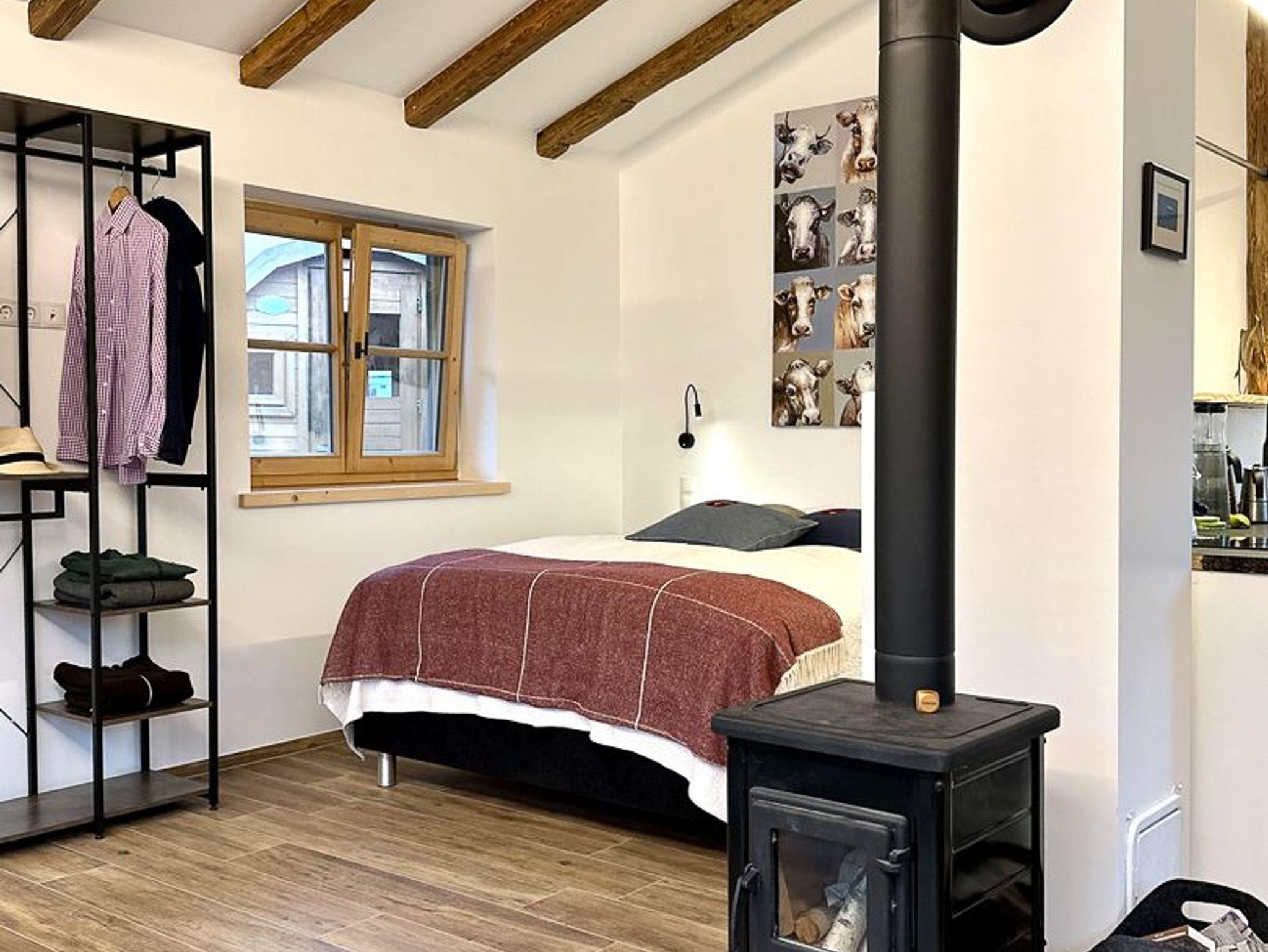 S' Gloane bietet als privates Ferienhaus mit eingezäuntem Garten Platz für zwei Personen, optional auch mit Kleinkind und/oder Hund.