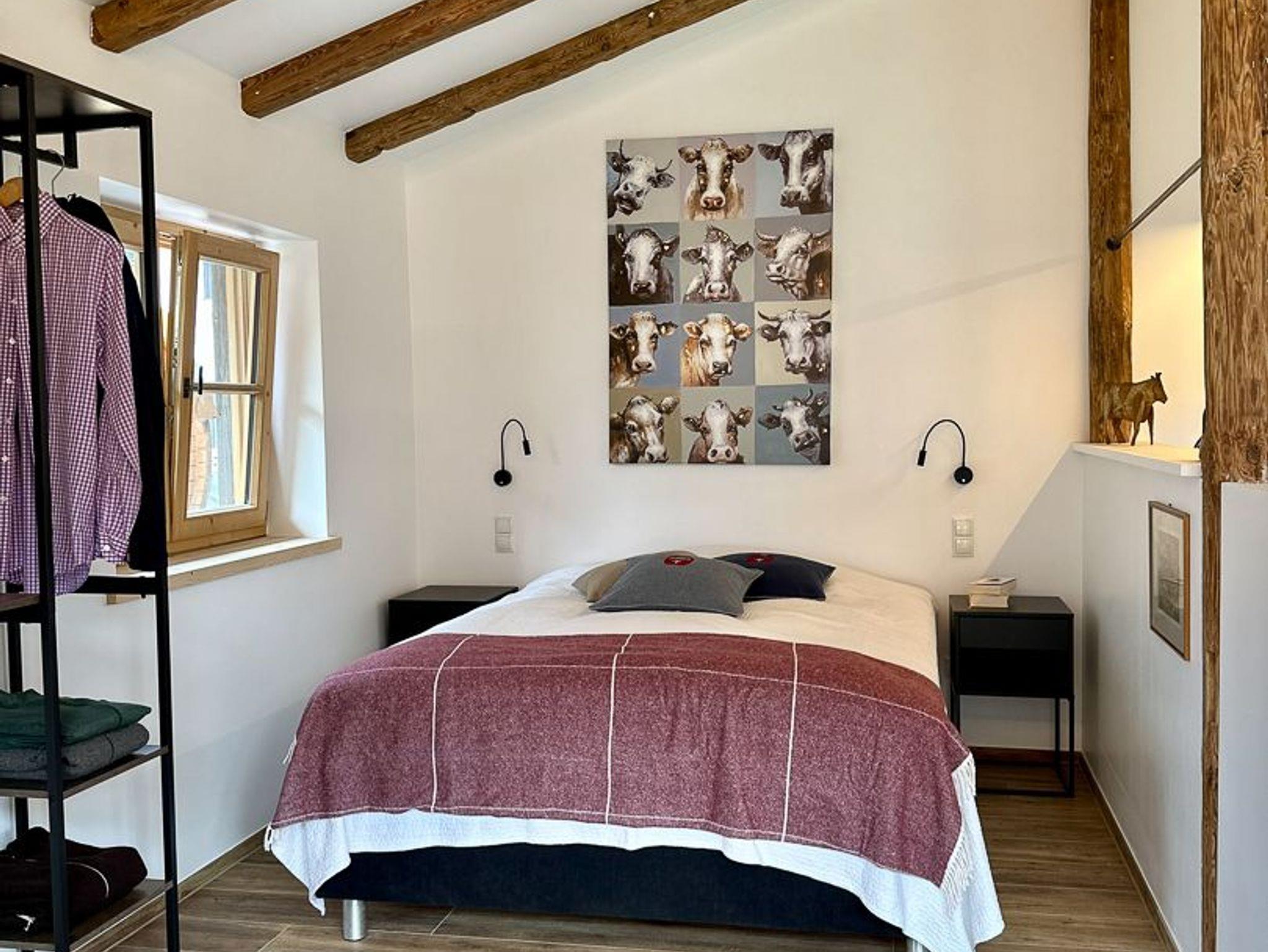 S' Große hat eine Belegungskapazität von 4 Personen (zuzügl. einem Babyreisebett bis 5 Personen). Ein Boxspringbett befindet sich im Schlafzimmer im Erdgeschoss, das weitere Doppelbett oben auf der Galerie. Nach Absprache ist die Mitnahme von bis zu 2 Hunden möglich.