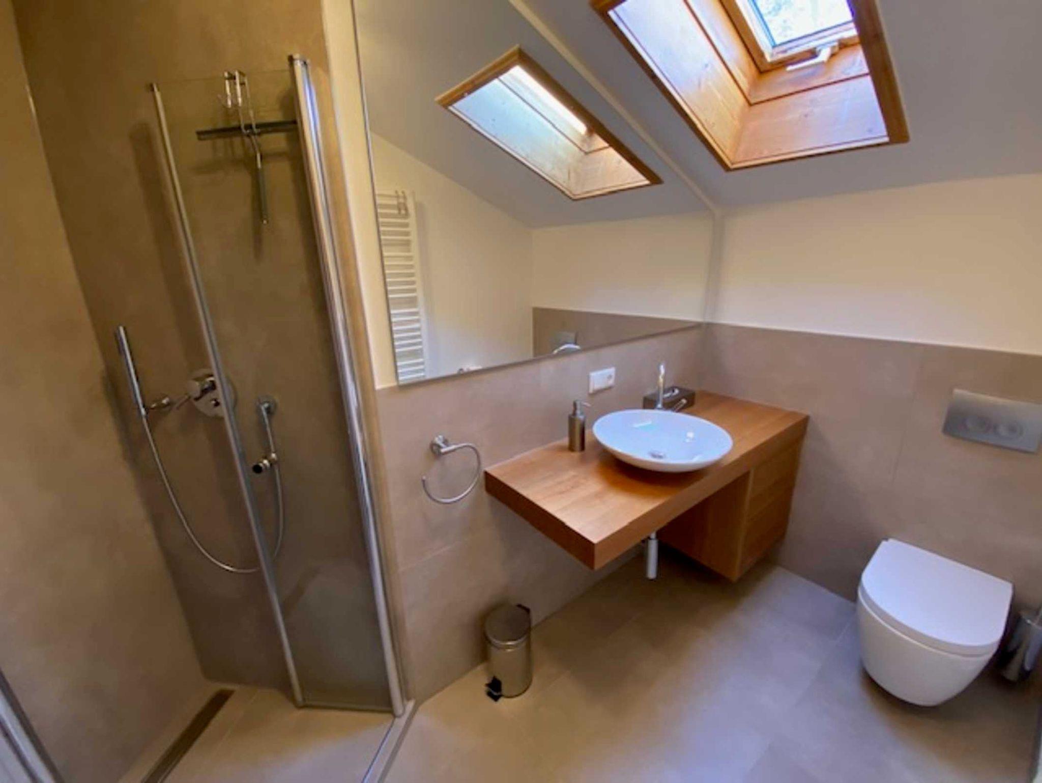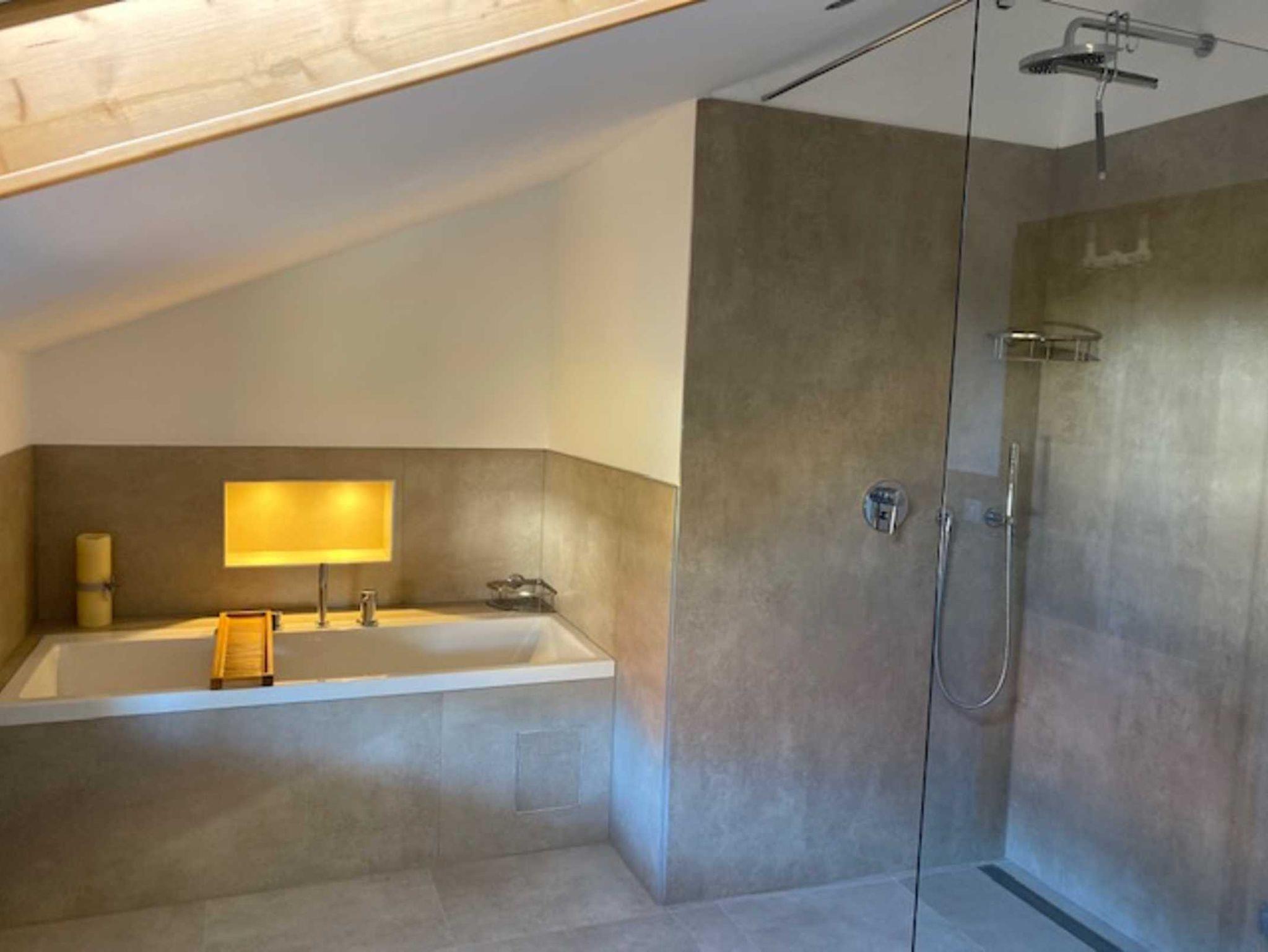 • 2 hochwertige Badezimmer mit Schreiner-Waschtischen und großzügiger Walk-in-Dusche mit Rainshower Brause und Badewanne