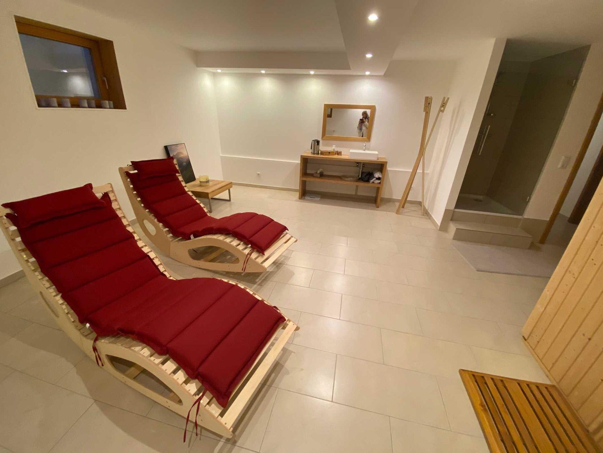 Entspannen Sie sich nach einer kalten Winterwanderung im Wellness-Bereich im Untergeschoss. Eine Sauna, Wellnessliegen und ein separater Raum mit Kicker bieten Gelegenheit zur Regeneration und Erholung!