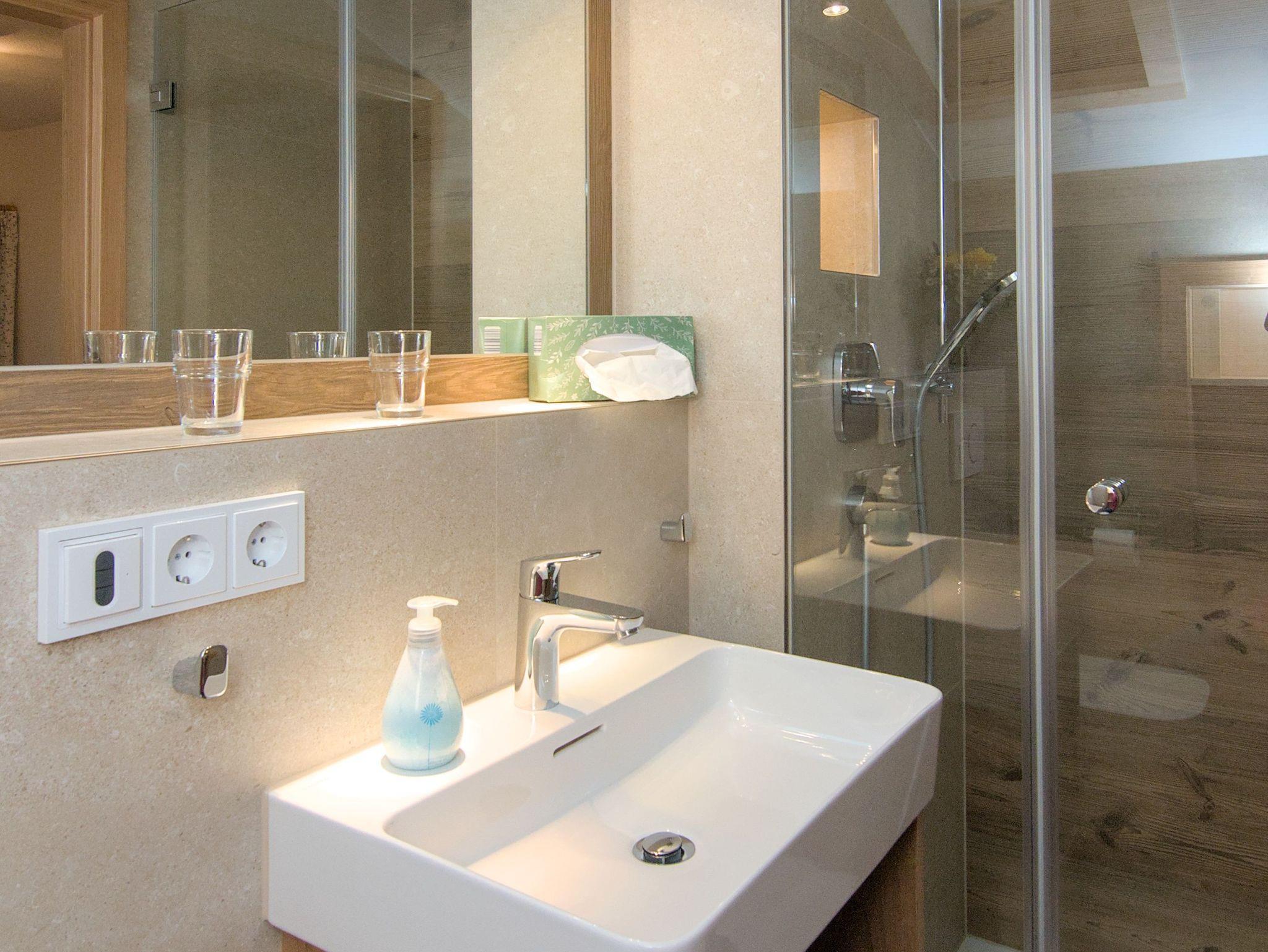 Das Doppelzimmer ist mit Dusche/WC, Balkon nach Osten, TV, Telefon, Radio und Safe ausgestattet.