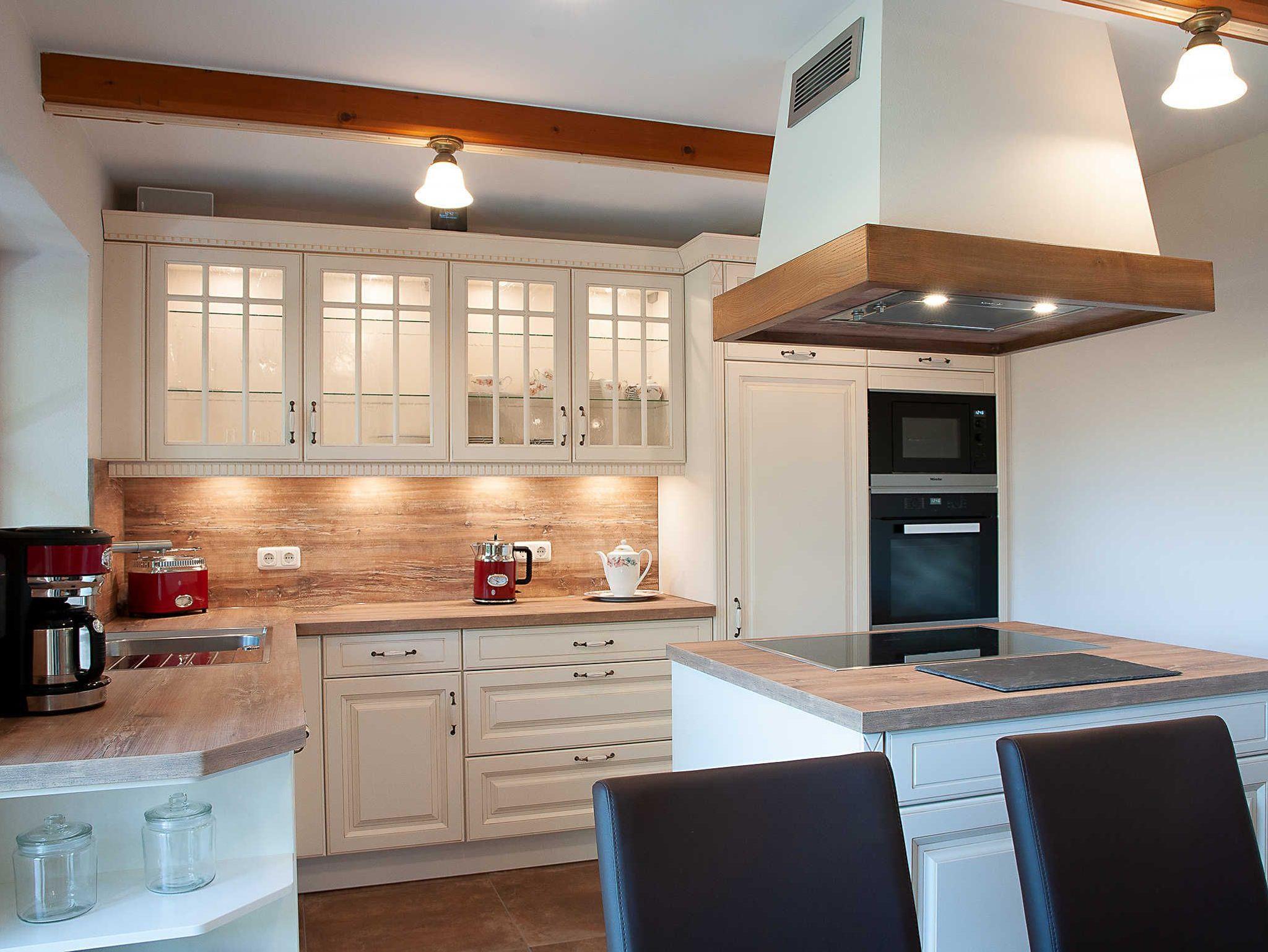 · Küche, hochwertige Einbauküche mit Kochinsel, Spülmaschine, Backofen, Mikrowelle, Radio, Kaffeemaschine, Toaster, Wasserkocher, Tisch mit Sitzgruppe, Fliesenboden mit Fußbodenheizung und direktem Zugang zur Terrasse.