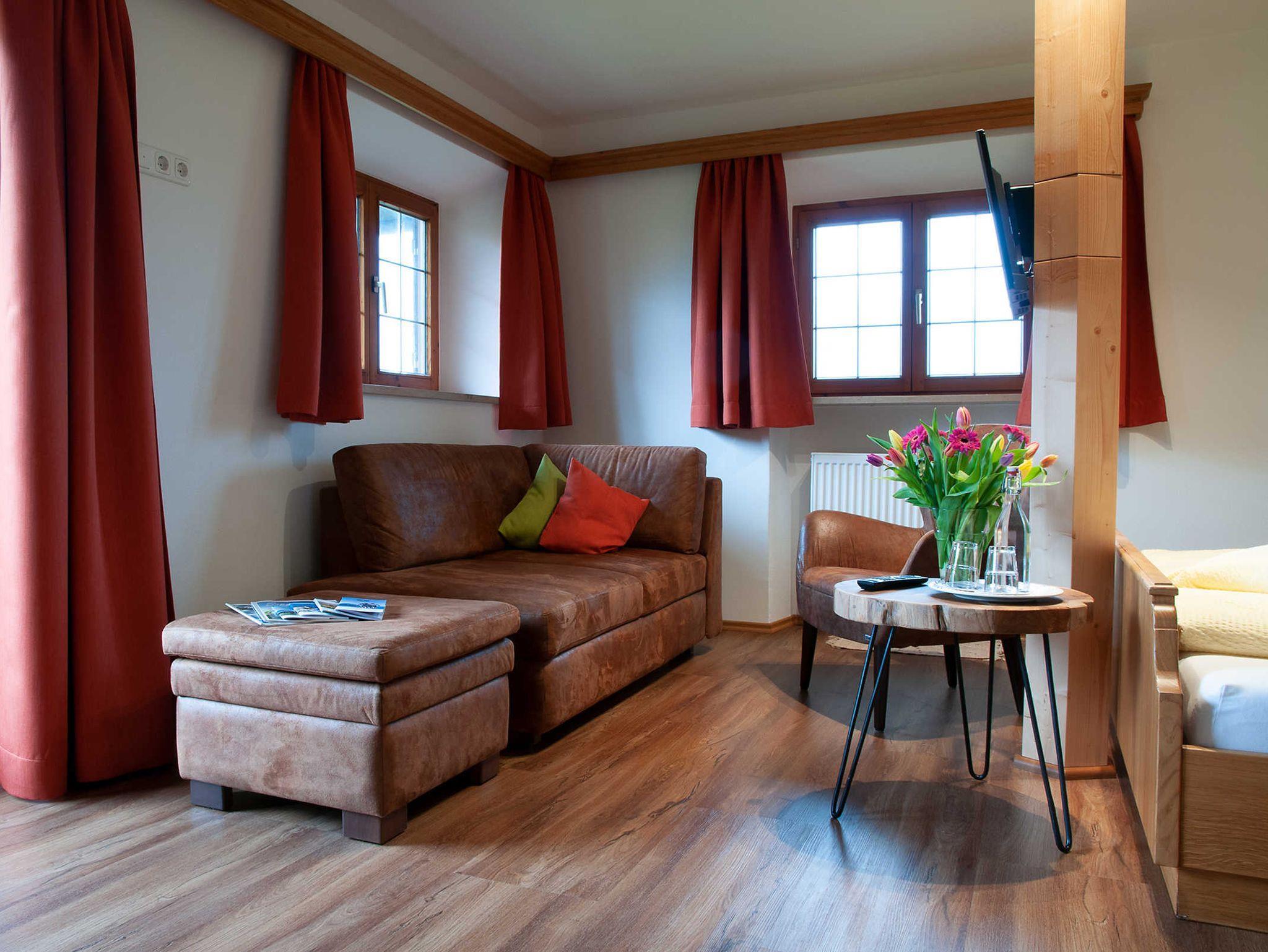 Zurück auf unserem Webermohof erwartet Sie unsere Sonnenterrasse mit freiem Blick in die Berge. Kleine Gäste kommen auf unserem großen Spielplatz mit Trampolin, Tischtennis und Co. voll auf ihre Kosten, während die Erwachsenen vor dem knisternden Holzofen in unserer Bauernstube die Gedanken schweifen lassen.