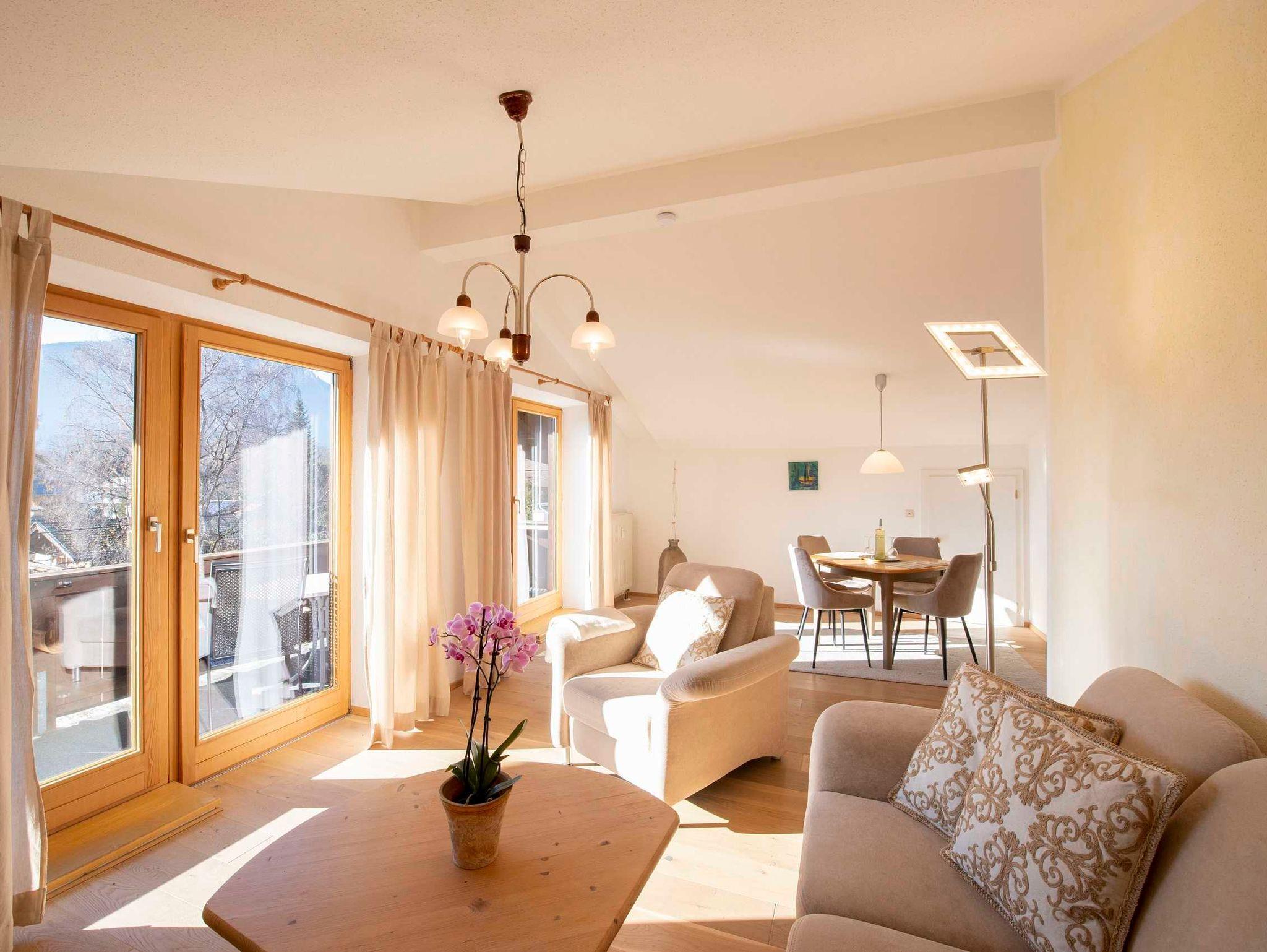 Die Ferienwohnung Kraus Nr. 2 hat einen Balkon nach Süden. Durch diese Ausrichtung ist das Wohnzimmer sehr hell.