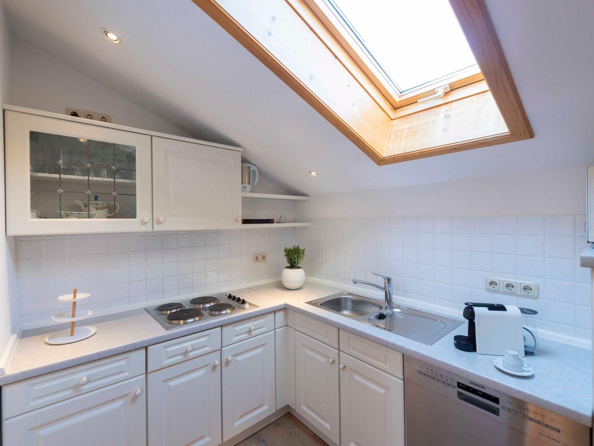 Die separate Küche ist modern und komplett ausgestattet, Sie verfügt u.a. über ein Mikrowellengerät und einen Geschirrspüler.