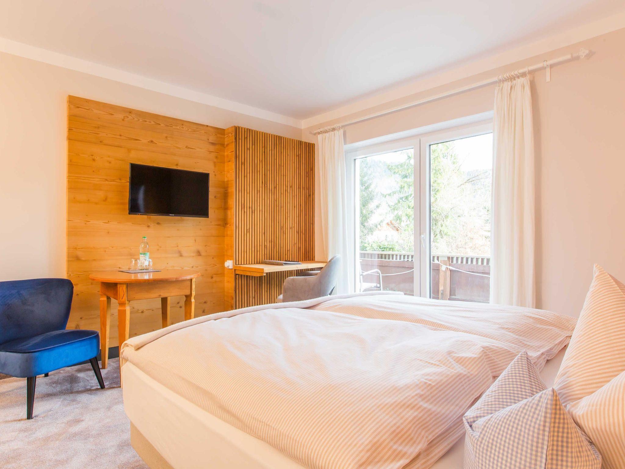 Helle, renovierte 1,5 Zimmer mit Verbindungstür im modernen Landhausstil. Bett min. 180cm bzw. im seperaten kleinen Zimmer min 100cm breit, Flatscreen TV, Sessel, Tisch, Sekretär, Balkon oder Terasse, Nichtraucher, eigenes Bad.