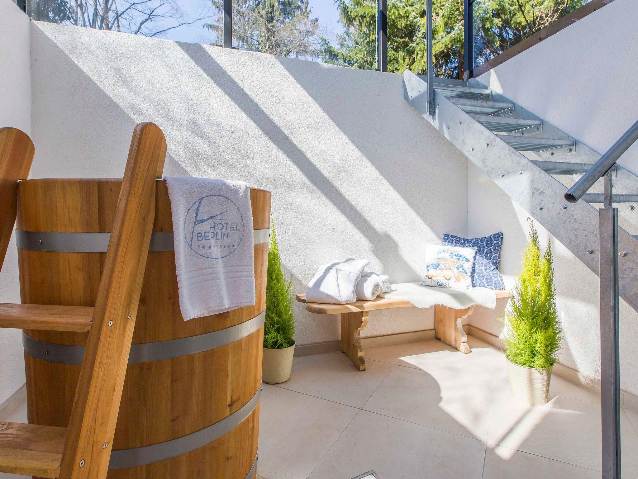 Unser vollkommen neu gestalteter Wellnessbereich im Hotel Berlin am Tegernsee lädt Sie ein zu purer Erholung, Ruhe und Komfort. Hier können Sie dem Alltag entfliehen und Ihre Seele baumeln lassen. Zum Beispiel bei einem Saunagang in unserer höchst modernen Altholzsauna, chillen auf den zwei Infrarotliegen oder in unserem neuen komfortablen Ruhebereich mit einer Salzsteinwand und bei einem Abstecher in die neu designte Duschlandschaft.