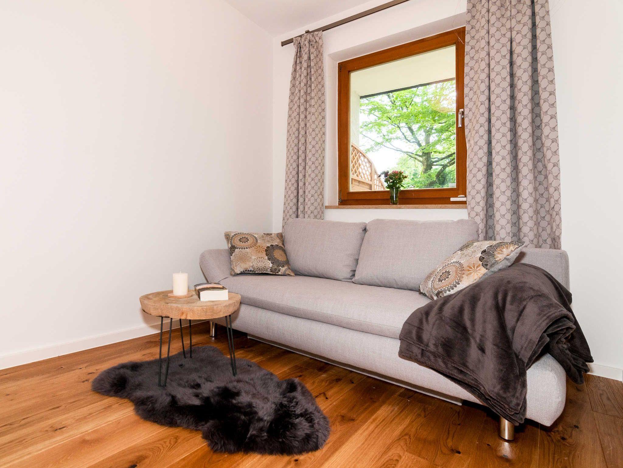 Die gesamte Wohnung wurde 2020 hochwertig grundsaniert und überzeugt mit hohen, lichtdurchfluteten Räumen, massiven Eichendielen und großen Fenstern. Die Wohnung ist aufgeteilt in eine großzügige Wohnküche, einem modernen Bad mit Regenwalddusche, einem Schlafzimmer und einem Nebenzimmer. Die Einrichtung ist im modernen Alpenlook gehalten. Die hochwertigen Massivholzmöbel und die geschmackvolle Ausstattung sorgen für ein Wohlfühlambiente.