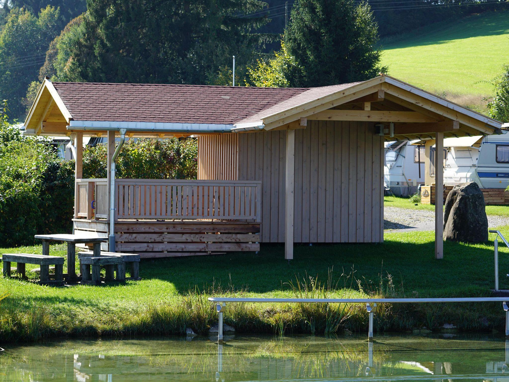 Neben Ihrem Schlaffass mit 1 bis 4 Betten, für die bei Bedarf auch Bettzeug gemietet werden kann, können selbstverständlich alle Einrichtungen unseres Campingplatzes wie Sanitäranlagen, Kochstelle, Badeweiher, Aufenthaltsraum etc. mitbenutzt werden.