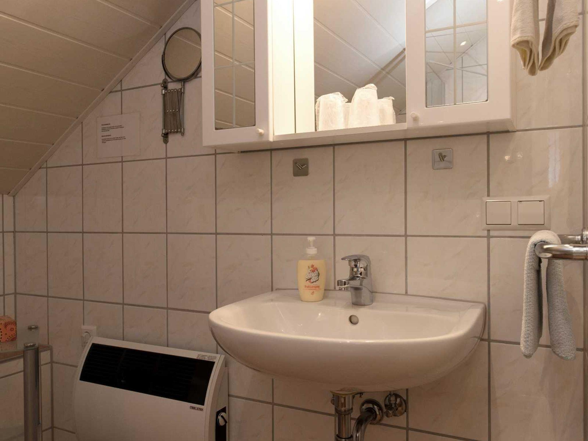 Es gab ein Fenster im Schlafzimmer, welches von außen verschlossen (zugemauert?) war und es somit auch kein Tageslicht im Schlafzimmer gab, der Griff wurde demontiert, also war es auch nicht zu öffnen. Die Einrichtung ist schon älter, alles aber sehr sauber und gepflegt. Das Frühstücksangebot von 8-9.30 Uhr bietet eine große Auswahl und es werden auf Wunsch Eier frisch zubereitet. Die Ausstattung der Ferienwohnung ist gut, es gibt eine kleine Küche mit 2 Kochfeldern, einen Kühlschrank, Wasserkocher, Kaffeemaschine und ausreichend Geschirr. Es stehen auch verschiedene Brettspiele zur Verfügung und es gibt Informationen über die Region. W-LAN steht kostenfrei zur Verfügung.