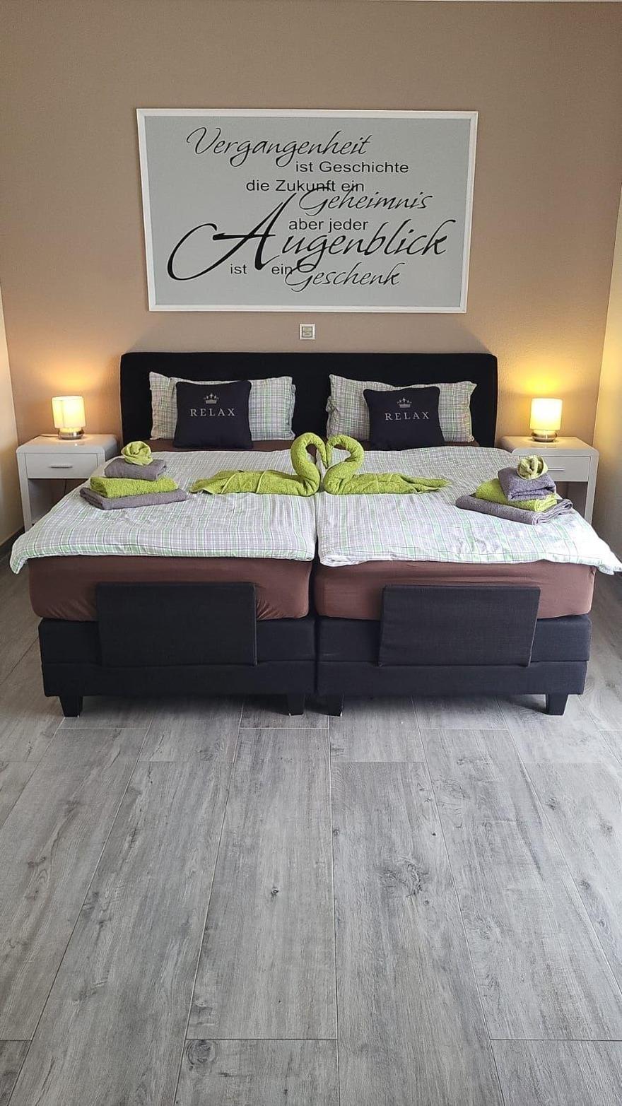 Neben zwei Schlafzimmern gibt es eine Küche, ein Bad, ein Wohnzimmer, einen Wellness-Raum mit einer Infrarotkabine und einen geräumigen Flur.