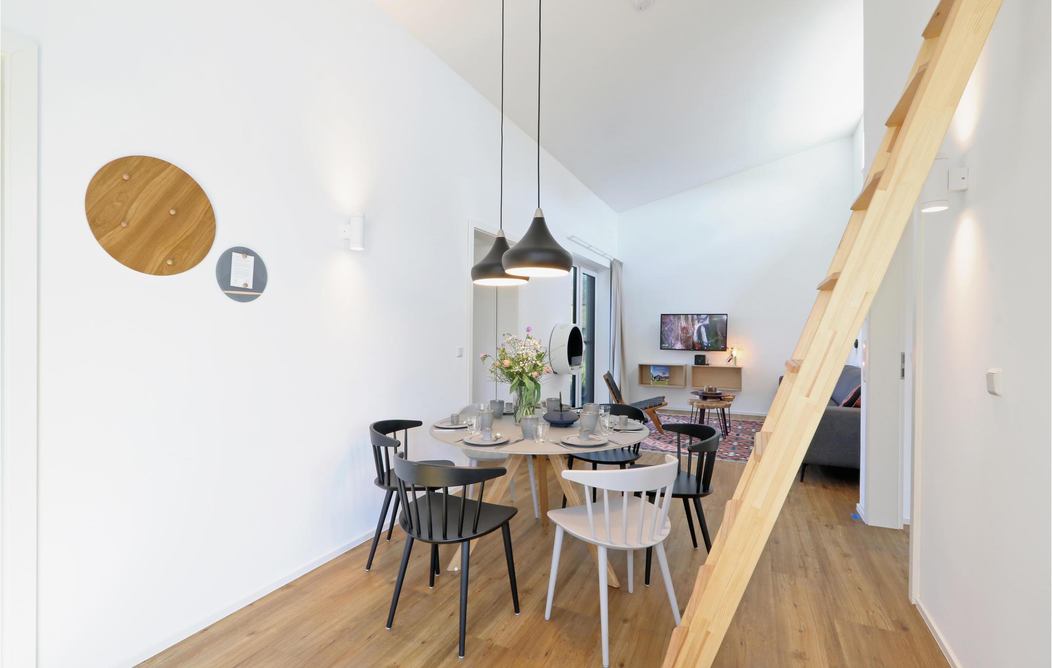 Willkommen in Ihrem Ferienhaus, das Ihnen als Familie mit Kindern oder als kleine Freundesgruppe ein gemütliches, wohnliches Ambiente mit Einrichtung im skandinavischen Design bietet. Zwei Terrassen zum Sitzen und Essen in der Sonne, der Bio-Kamin, Hot Tub und die eigene Sauna lassen keine Wünsche offen. Die offene Küche lädt zum Kochen und Verweilen ein. Auf der Galerie befindet sich ein offenes Schlafzimmer.