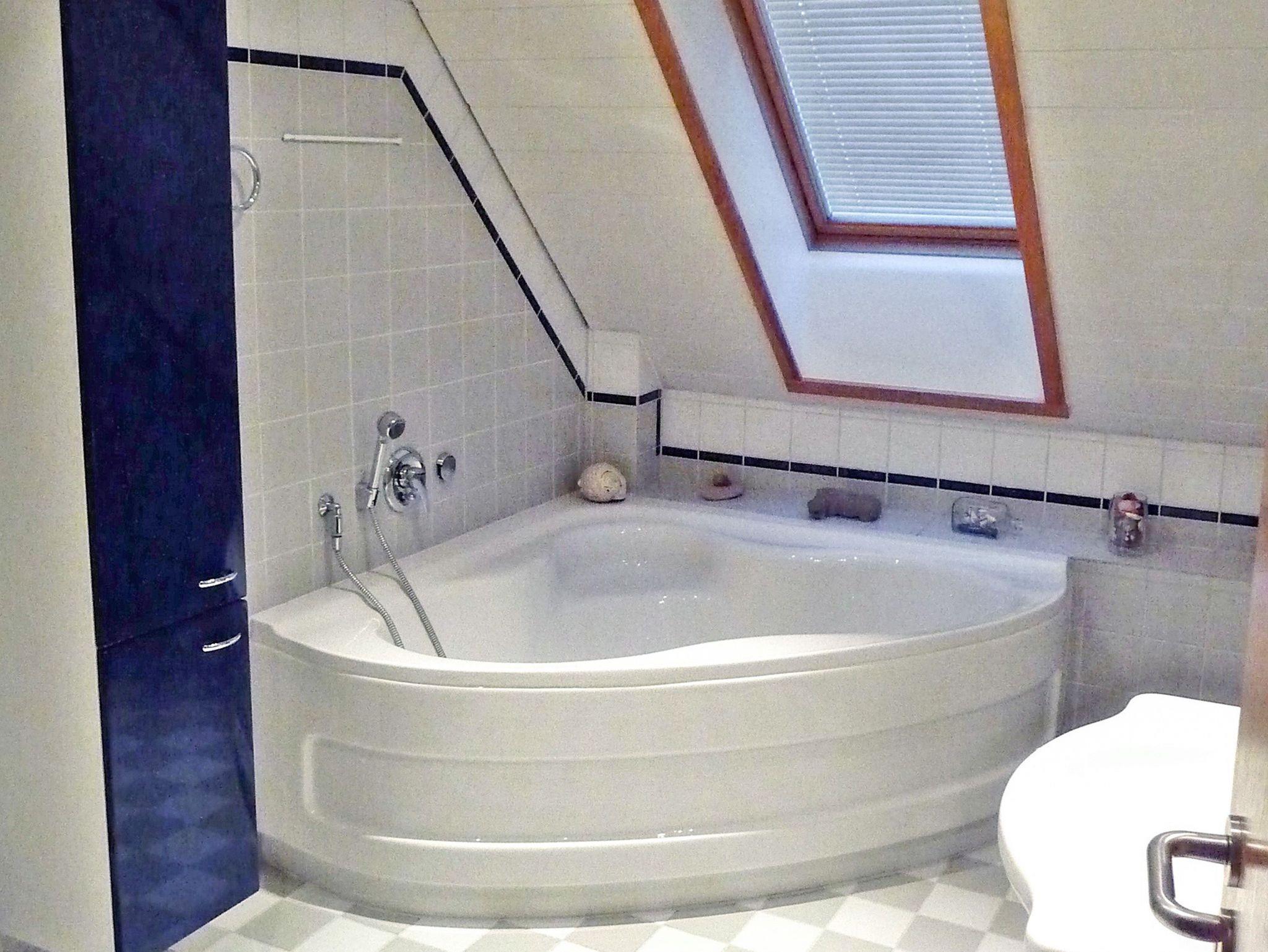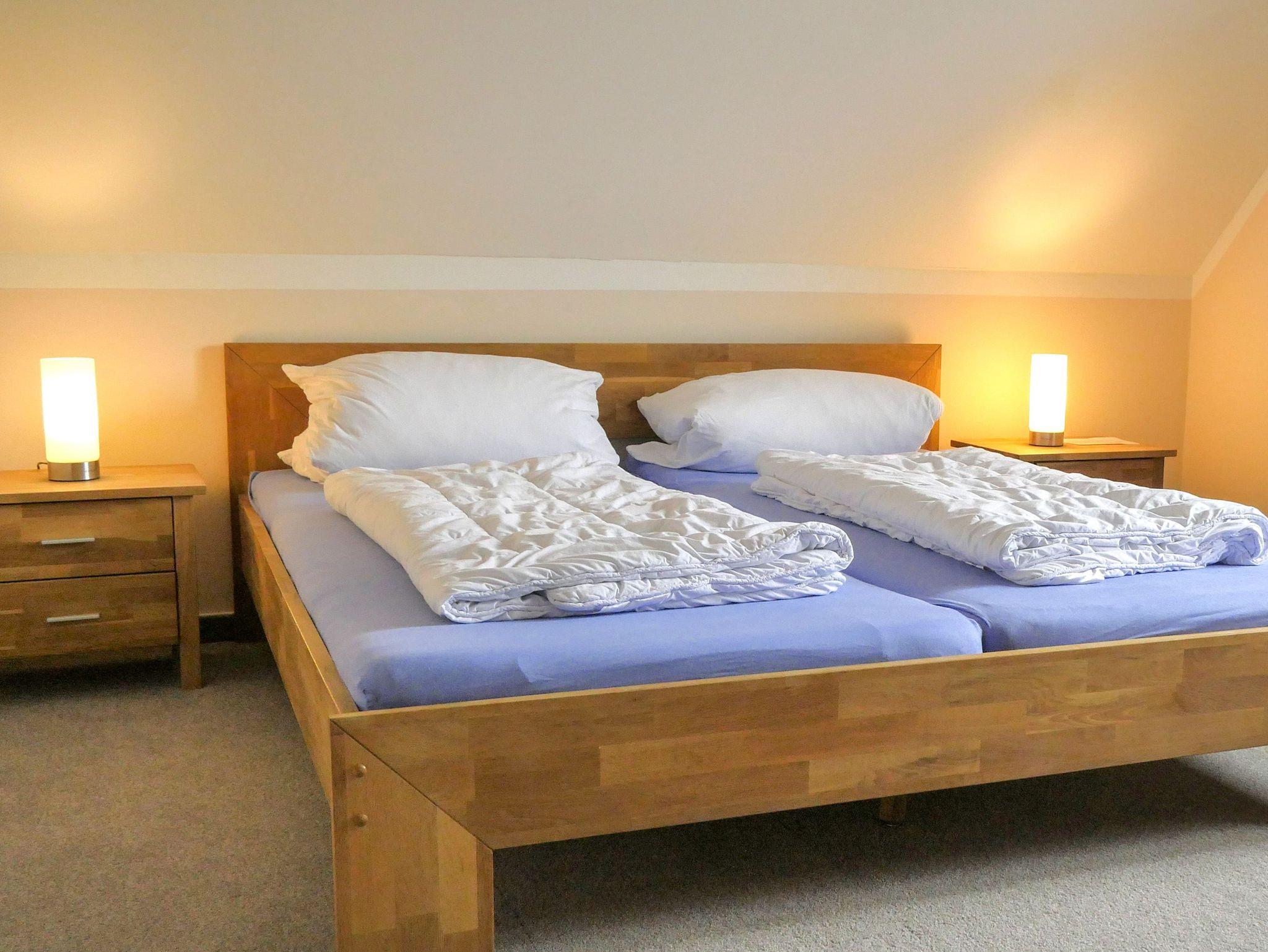 Ebenfalls im Obergeschoss befinden sich zwei behagliche Schlafzimmer mit je einem Doppelbett (180x200). Eines der Schlafzimmer verfügt zusätzlich über ein Schlafsofa (80x200), das ideal für eine weitere Person ist. Das moderne Badezimmer ist ein kleines Wellness-Highlight mit einer Dusche, einer Eckbadewanne und Fußbodenheizung ? perfekt, um die Seele baumeln zu lassen. Ein zusätzliches Gäste-WC sorgt für noch mehr Komfort.