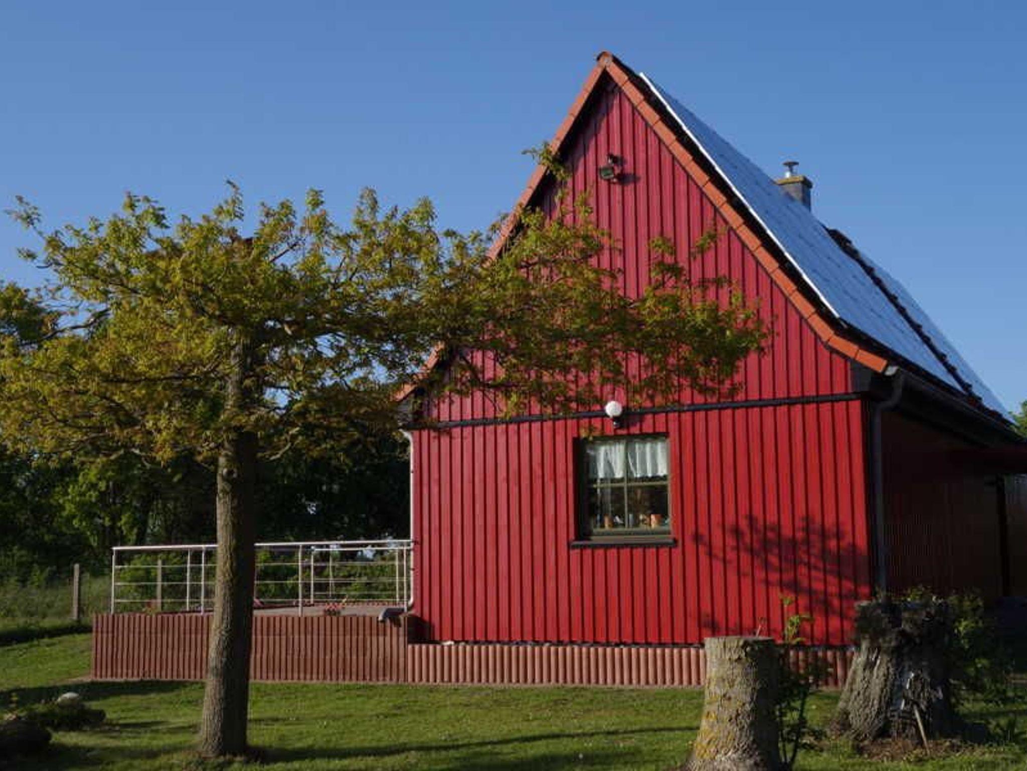 Vom Ferienhaus zum Bodden sind es nur 100 Meter. Hier gibt es einen Anlegesteg, von dem aus gesurft, Boot gefahren oder gebadet werden kann. Beim Vermieter kann ein kleines Ruderboot für 2 Personen gemietet werden.