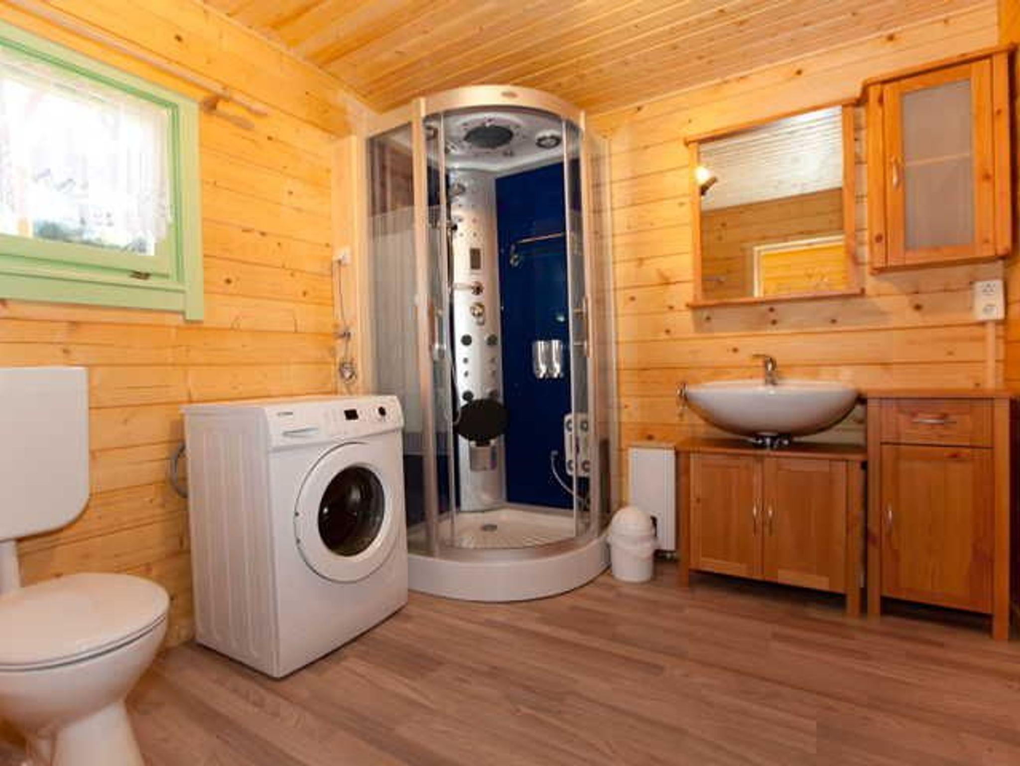 Das Badezimmer mit Duschtempel & Radio & Waschmaschine - Ob nach der Radtour, der Wanderung oder dem Sonnenbad an der Ostsee, in diesem Badezimmer können Sie sich mal wieder richtig Zeit für sich nehmen und sich im Duschtempel verwöhnen. Schwitzen ist für den Körper und die Seele wie Balsam - dafür gibt es hier die finnische Sauna. In dieser schönen Sauna im Ferienhaus Hanna können Sie nach Herzenslust abschalten und entspannen.